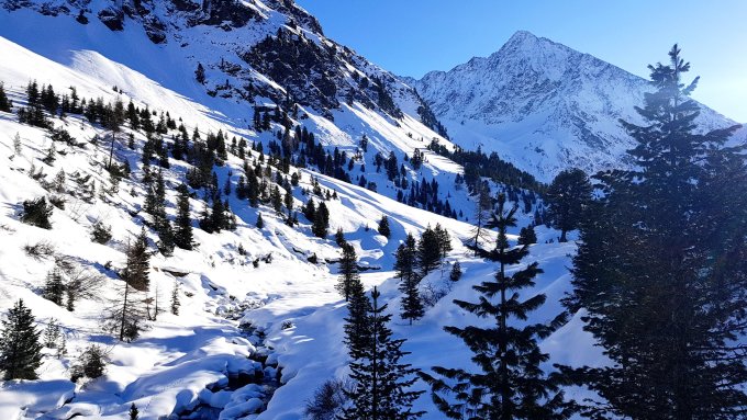 30cm Feinster Pulverschnee auf einer relativ guten Unterlage. Im Gipfelbereich ist allerdings auf Triebschnee zu achten.