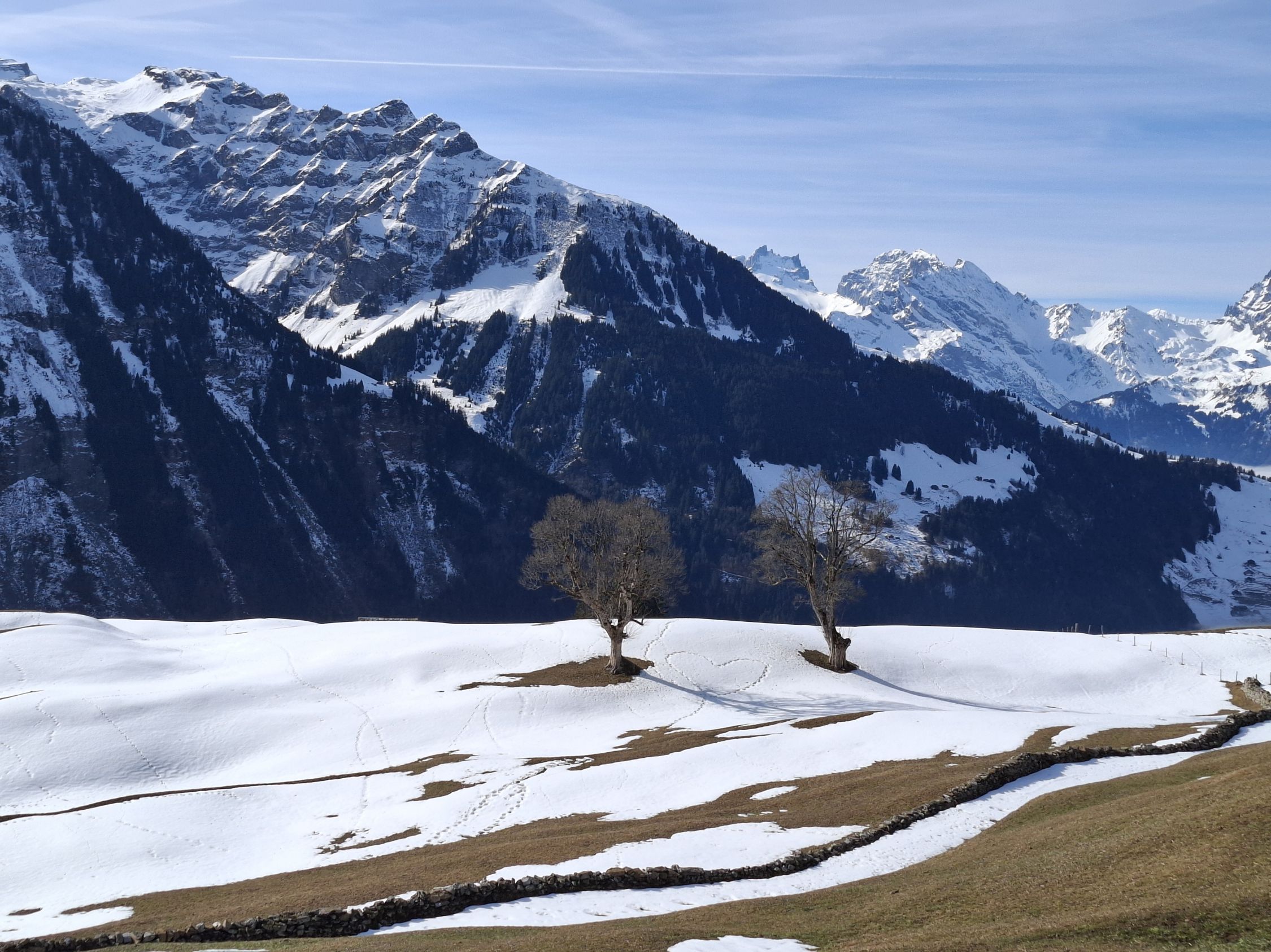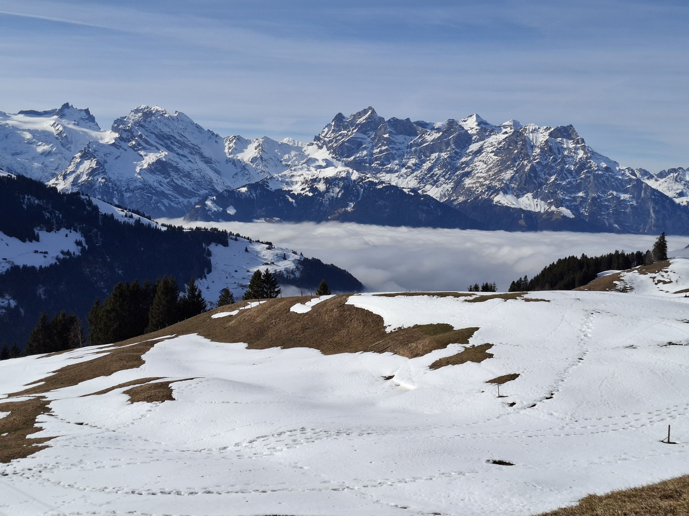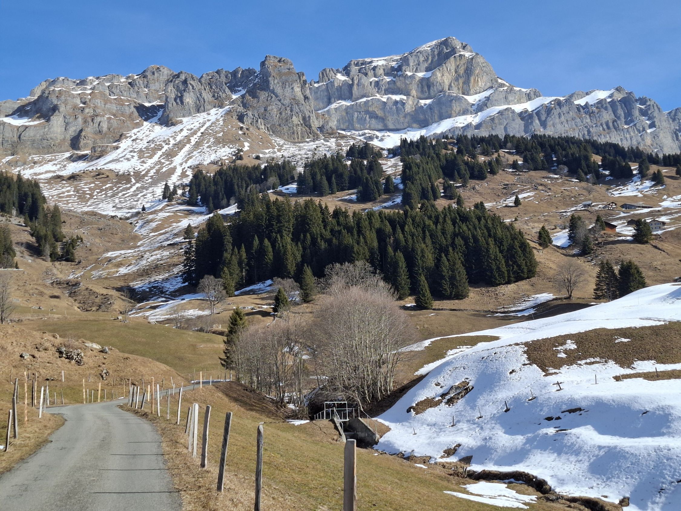 Leichte Wanderung vor dem Wetterumsturz. Von Urigen alles der Bergstrasse entlang via Chrummwassen zur Bergstation Tristel hinauf. Herrliche Sicht auf Uris Bergwelt. Mit wenigen Ausnahmen alles aper und das im Februar!