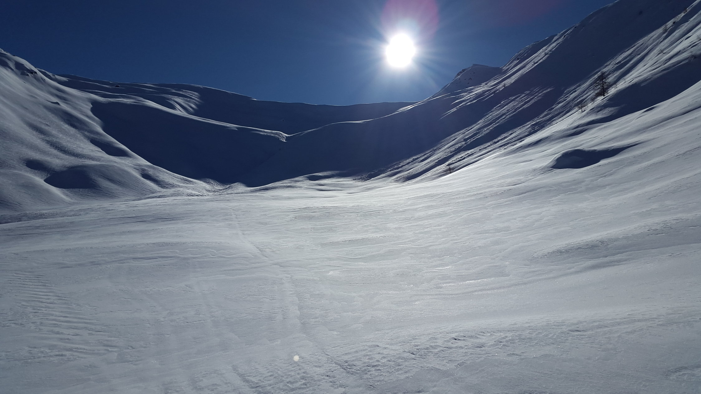 gute Bedingungen auf der ganzen Tour, im Aufstieg gespurt, unten etwas Bruch ab 1800 top Bedingungen