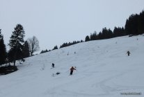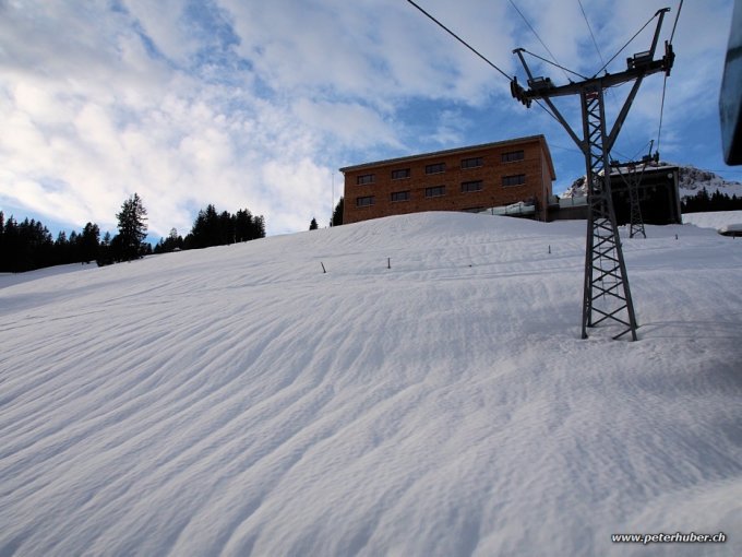 Abfahrt: Bis auf 2000 m schöner, gesetzter Pulverschnee. Darunter recht feucht. Um 1500 m sehr stark bremsender Schnee. Weiter unter stärker durchnässt und recht gut zu fahren. Der Schnee reicht bis 5 Minunten oberhalb der Talstation. Den Rest auf der Strasse - gibt nicht so dreckige Schuhe.