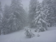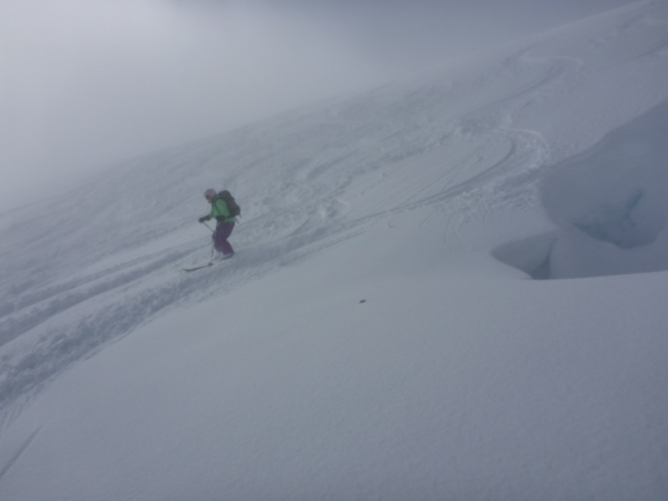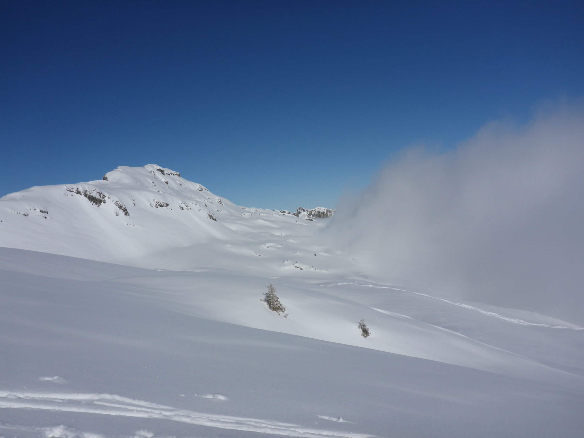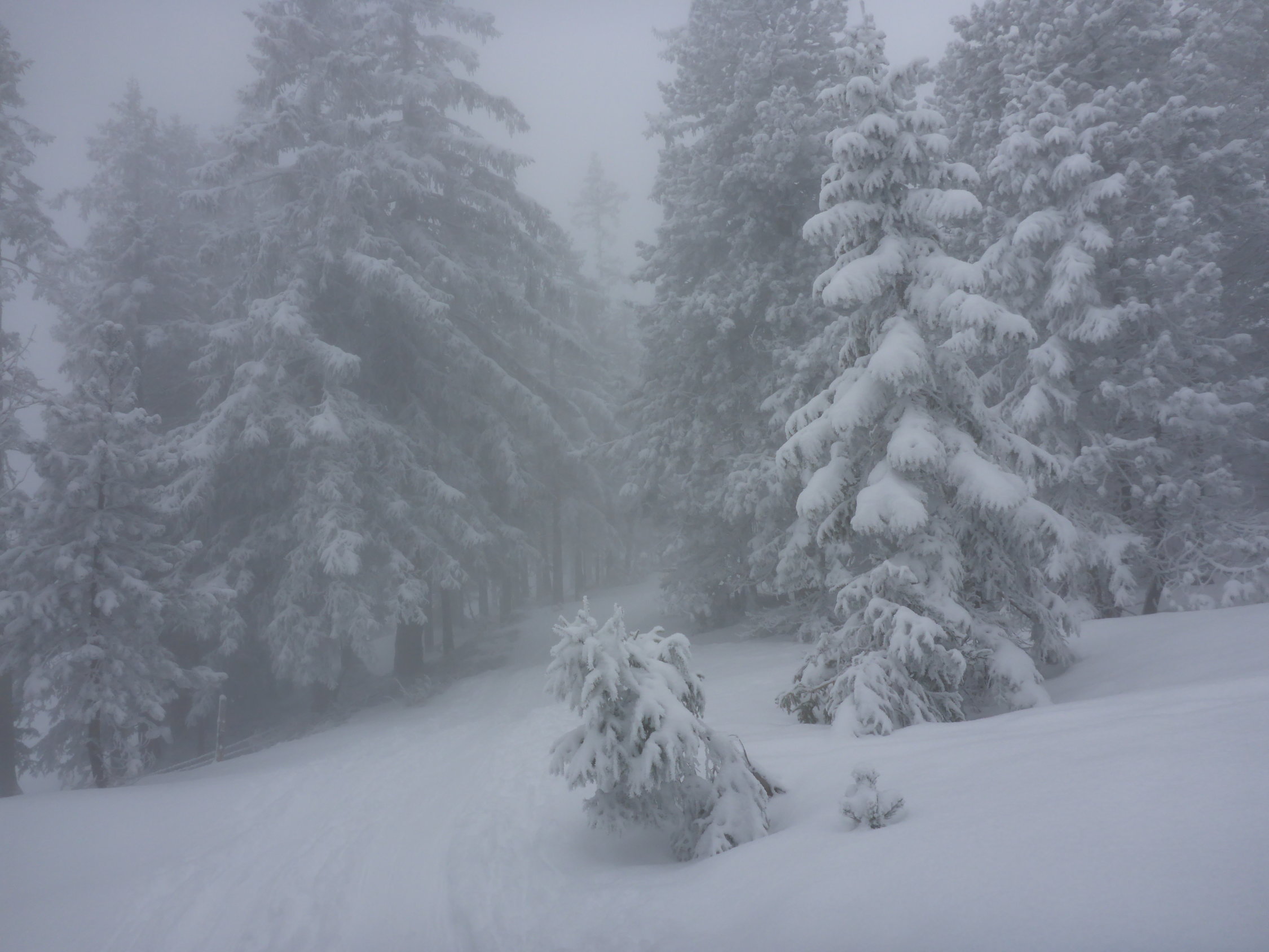 Der Nebel hielt sich hartnäckig und löste sich erst auf einer Höhe von ca. 1800 m richtig auf. Aufstieg auf Neuschnee der letzten Nacht, ca. 10-15cm - ob der Waldgrenze etwas mehr.Bis ca. Schlund eher nasser Schnee, dann zunehmend pulvriger.