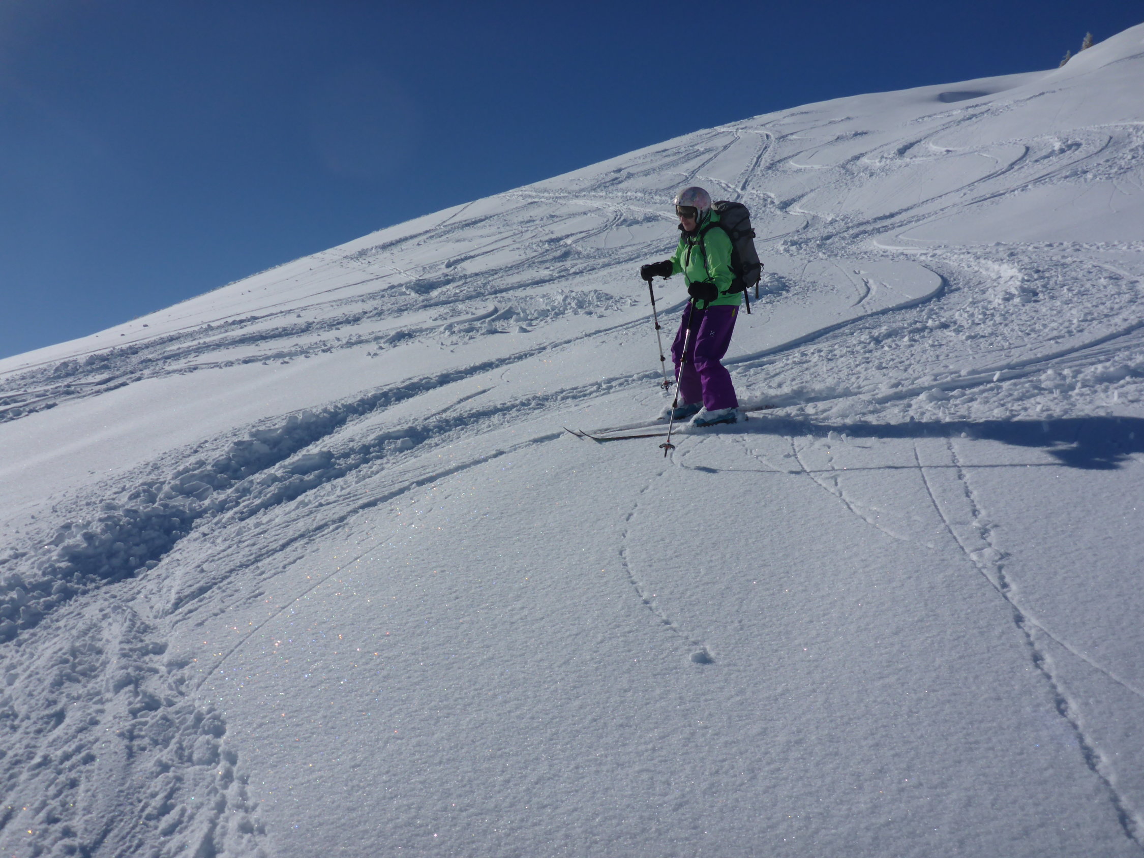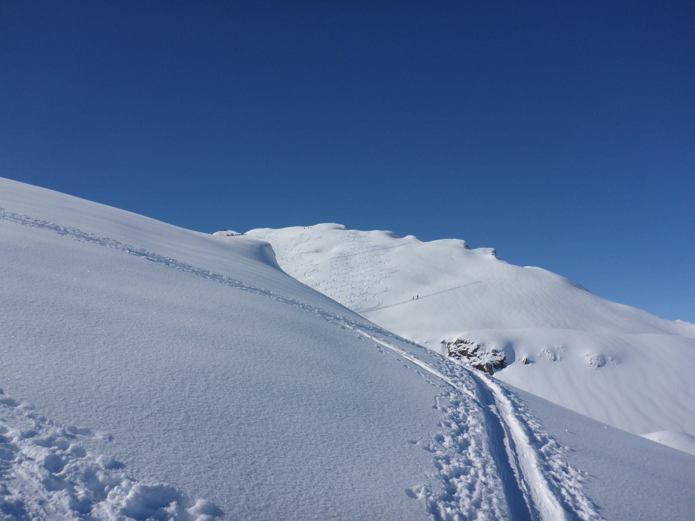 Hirsegg eher noch knapp Schnee - gegenüber Jahresanfang..., geht aber noch gut. Ab Schlund - Top Verhältnisse.