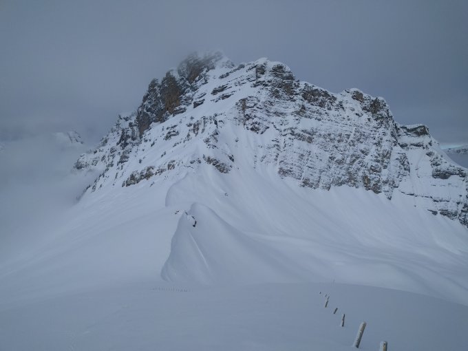 Unten 2-3cm, teils etwas knappe Unterlage, ab Wald gute, harte Unterlage bis zum Gipfel. Im Grimmi 10-15cm Pulver, an der Gipfelflanke 5-10cm schöner Pulver. Hatte das Vergnügen, die ersten Spuren zu ziehen. Dürfte nach der ganzen Völkerwanderung heute bereits etwas verfahren sein.