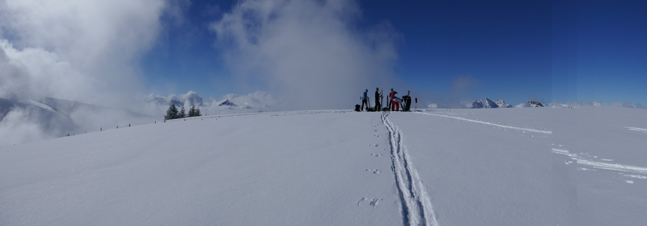Wir verbachten 2 1/2 Tage auf der Rinderalphütte der JO SAC Bern und genossen Abendberg, Pfaffen, Turnen bis Puntel bei allen möglichen Verhältnissen von Dauerregen über Schneesturm bis zum Wonnenpulver.