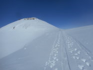 Aufstieg: Im unteren Teil 5cm Neuschnee auf durch feuchteter Unterlage. Ab Bussalp immer mehr Neuschnee, d.h. 10cm bis 30cm Pulverschnee. Ab der Bussalp war die Unterlage tragend!