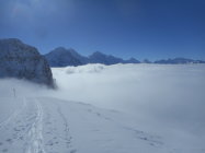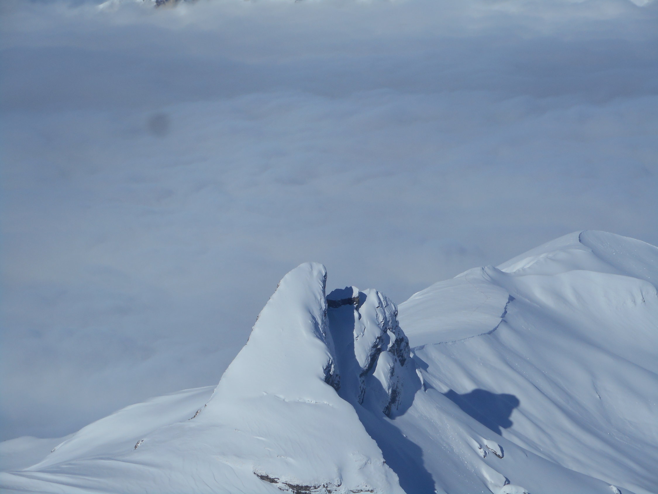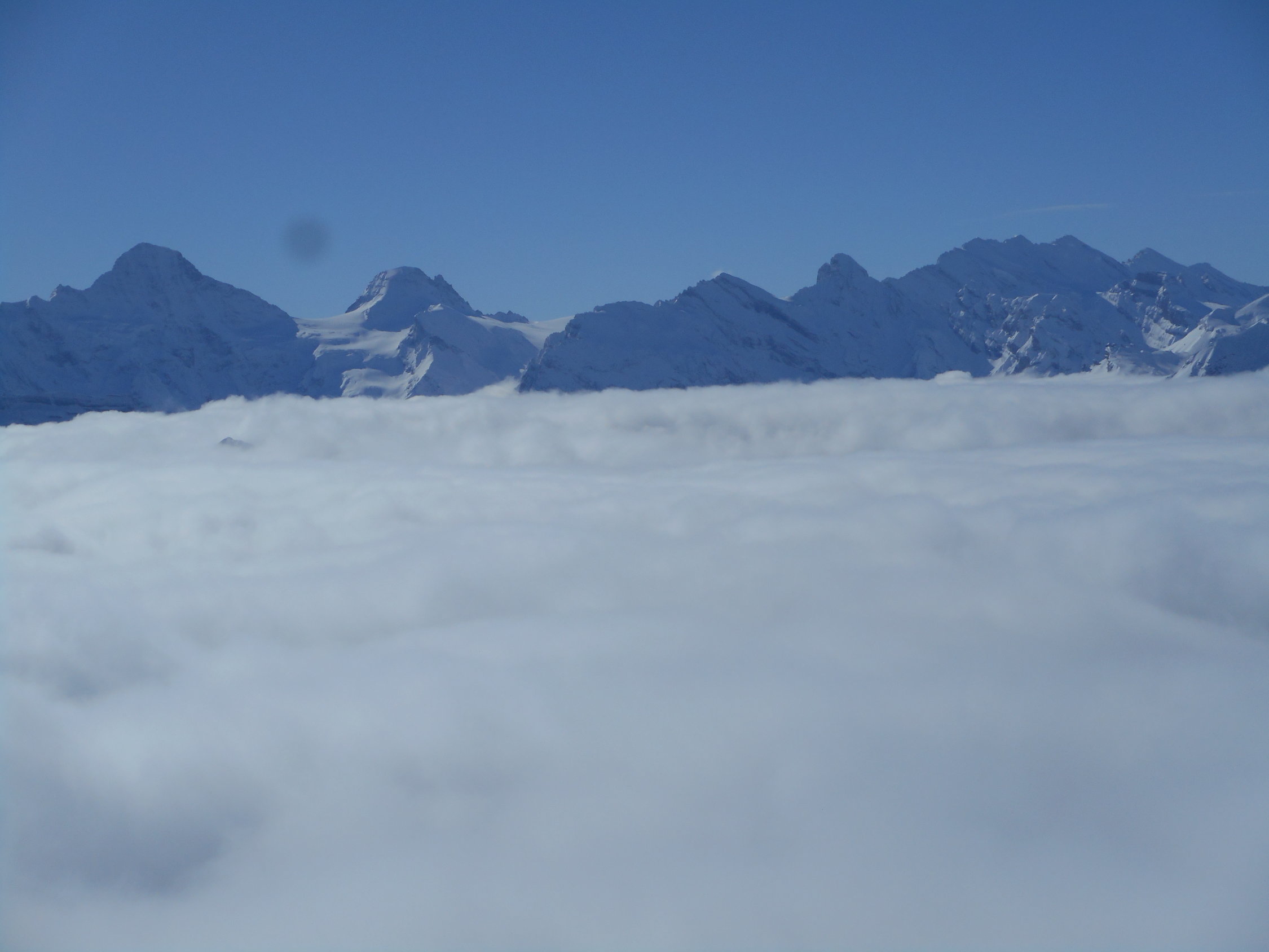 Wetter: Bis 2400m teils dichter Nebel. Ab dem Gassenboden 2550m waren wir über dem Nebel, im schönsten milden Sonnenschein. Es war auf dem Gipfel windstill. Die Ambiance war traumhaft schön auf dem Faulhorn! Wie Eisberge ragten die Bergriesen aus dem Nebelmeer! C`est fantastique!