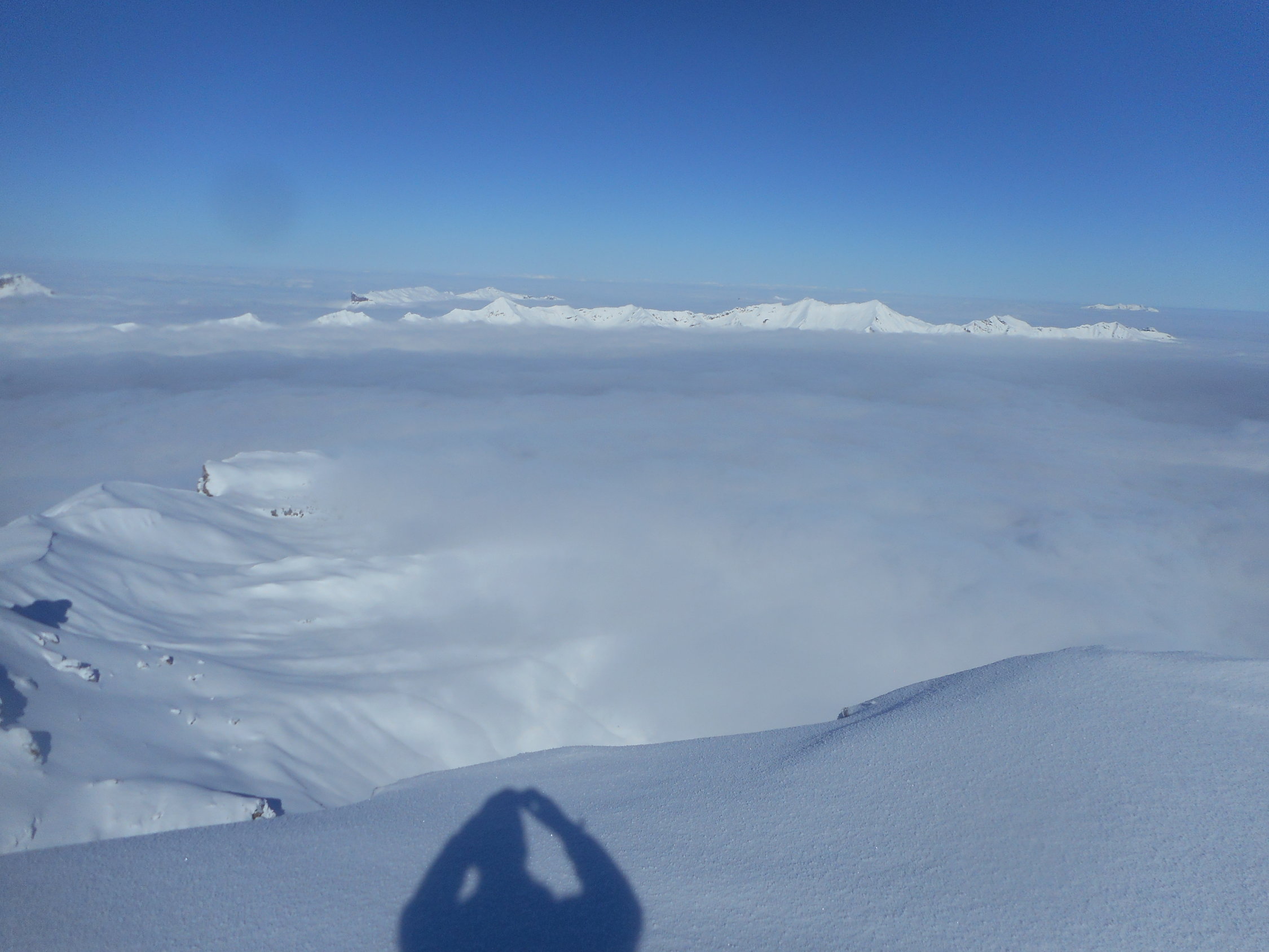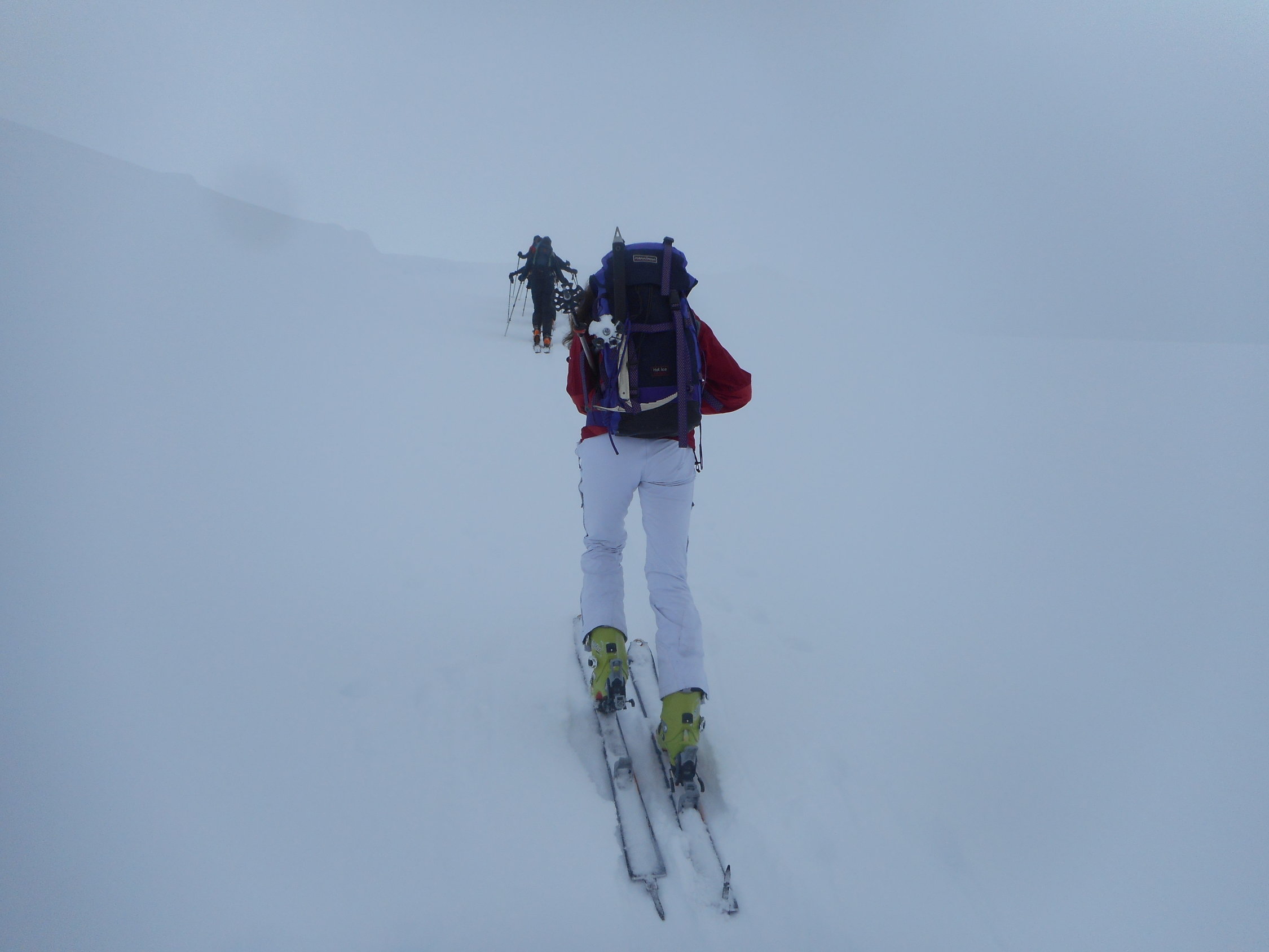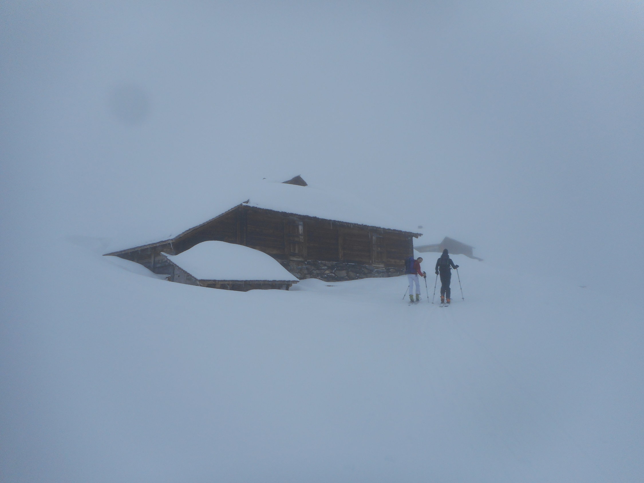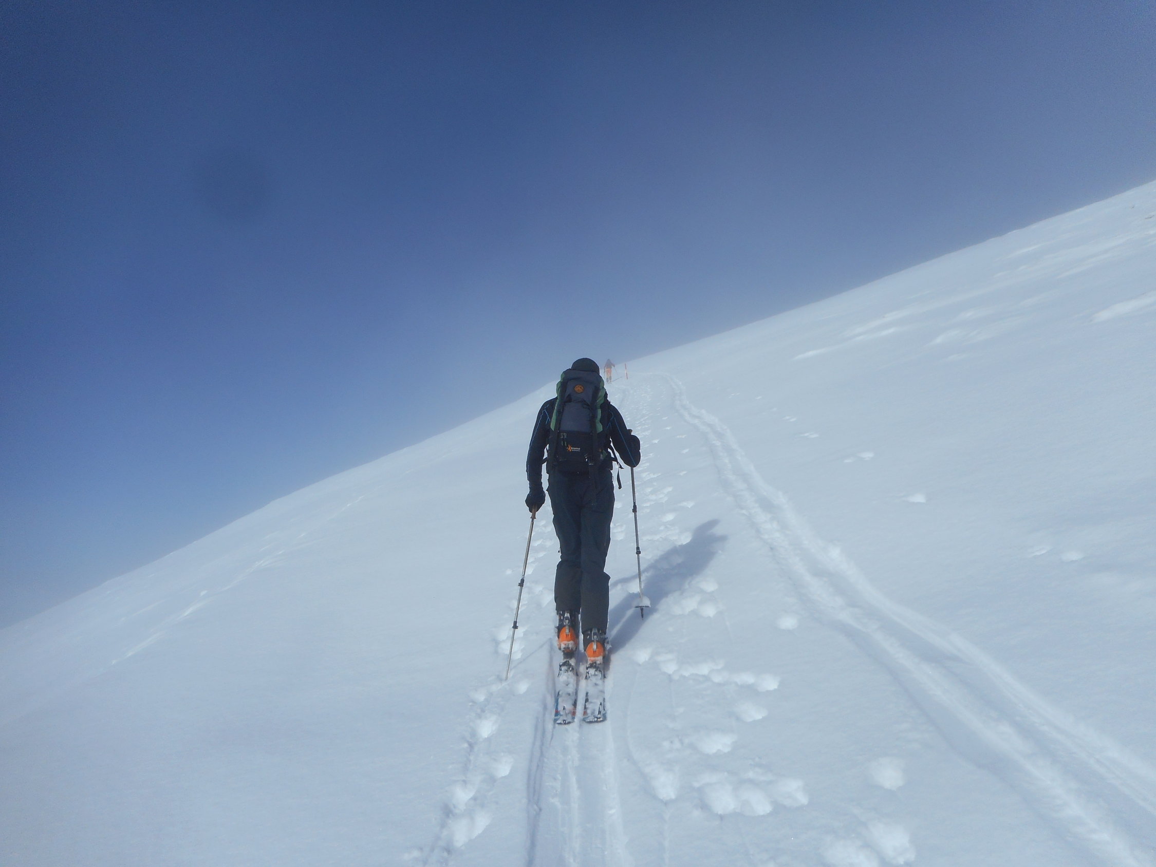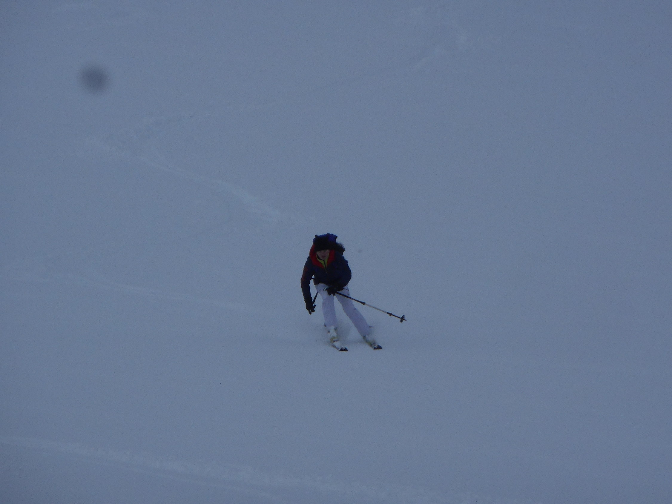 Vielen Dank an Marcel für die ausgezeichnete Routenwahl bei der Skiabfahrt im mittleren Teil! Hier war teils ziemlich dichter Nebel.