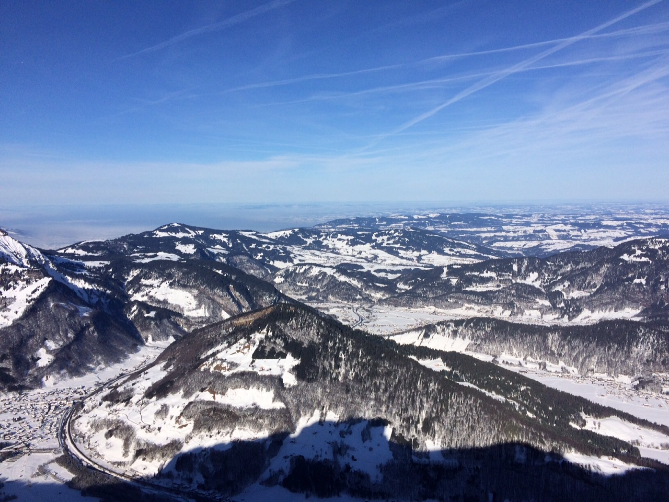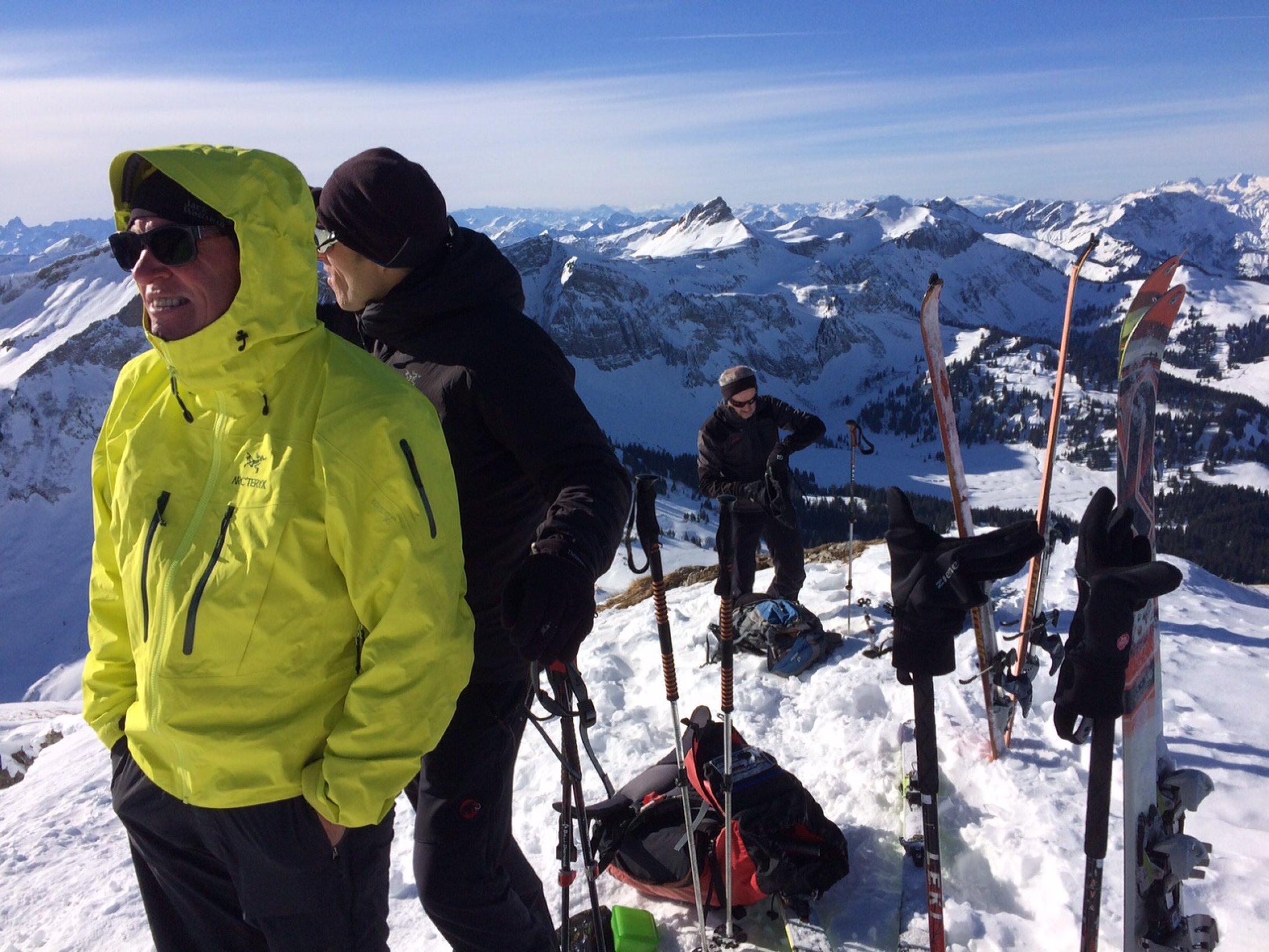 Wenig Schnee im Gebiet, Gipfelaufbau sehr hart und abgeblasen.