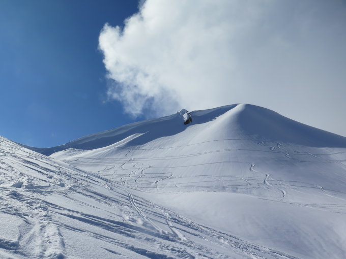 In der Nacht hat es ein paar wenige cm Neuschnee gegeben. Pulverschnee (auch von dem vorderen Niederschlag) ca. 10-15 cm auf harter Unterlage.