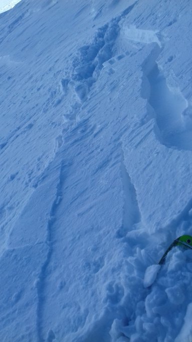 Kleines Schneebrett (2 m^2 gross, 15 cm dick) geloest im NO-Hang des Piz Medels.