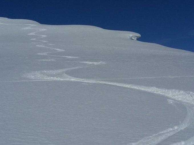 Anfangs noch Nebel bis zur Mittelargenalpe, ab dort Sonnenschein. Bei der Abfahrt ist der Nebel dann ein wenig aufgestiegen. Abfahrt auf 5-10cmm Pulver oberhalb. Im Mittelteil (Mittelargen) schöne Hänge die nicht aufgefirnt haben. Im unteren Teil zerfahren und teils rumplig zu fahren. Auf der ganzen Tour befindet sich genug Schnee, kein Steinkontakt. Im linken Teil der Abfahrt befinden sich teilweise noch unverfahrene Hänge :-)