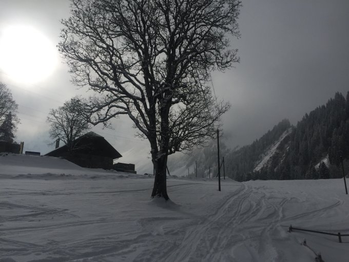 Wer morgen Samstag Zeit hat: Das wird super hier hinten. Der Pulver wird wohl in der Kälte konserviert, am Schatten sowieso. Galmschibe ist heute nur zehnmal befahren worden, dazu der Drümännler eventuell gespurt.