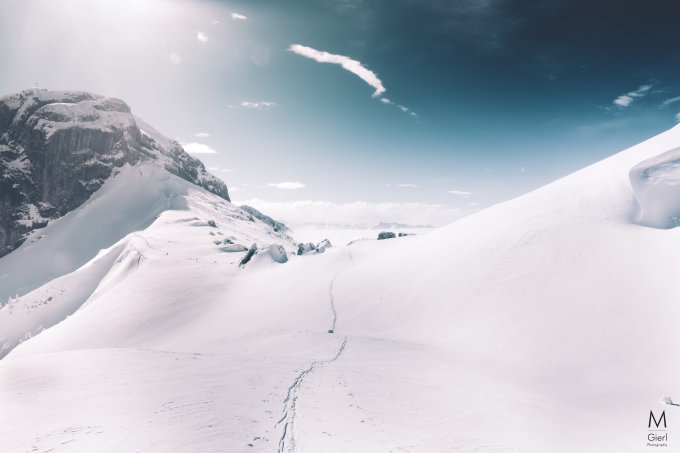 Ihm Wald nur wenig Schnee, gerade noch ausreichend fürs Fellen, Dann ab Fräkmünt 10 bis 30 cm Pulver auf harter Unterlage. Gipfelflanke mit schönem Pulver. Direkt mit den Ski aufs Plateau gelaufen und dann zu fuss auf den Gipfel.