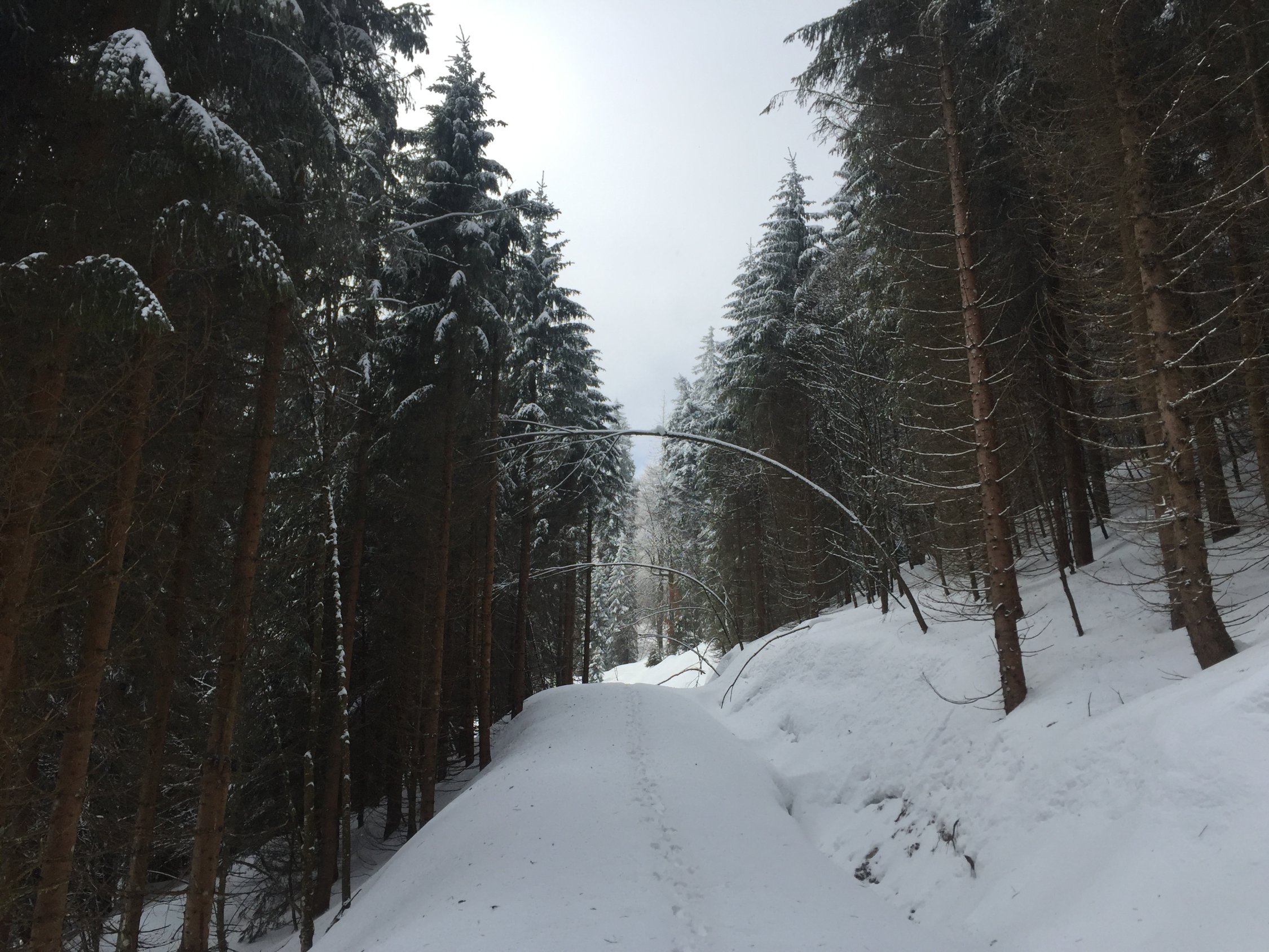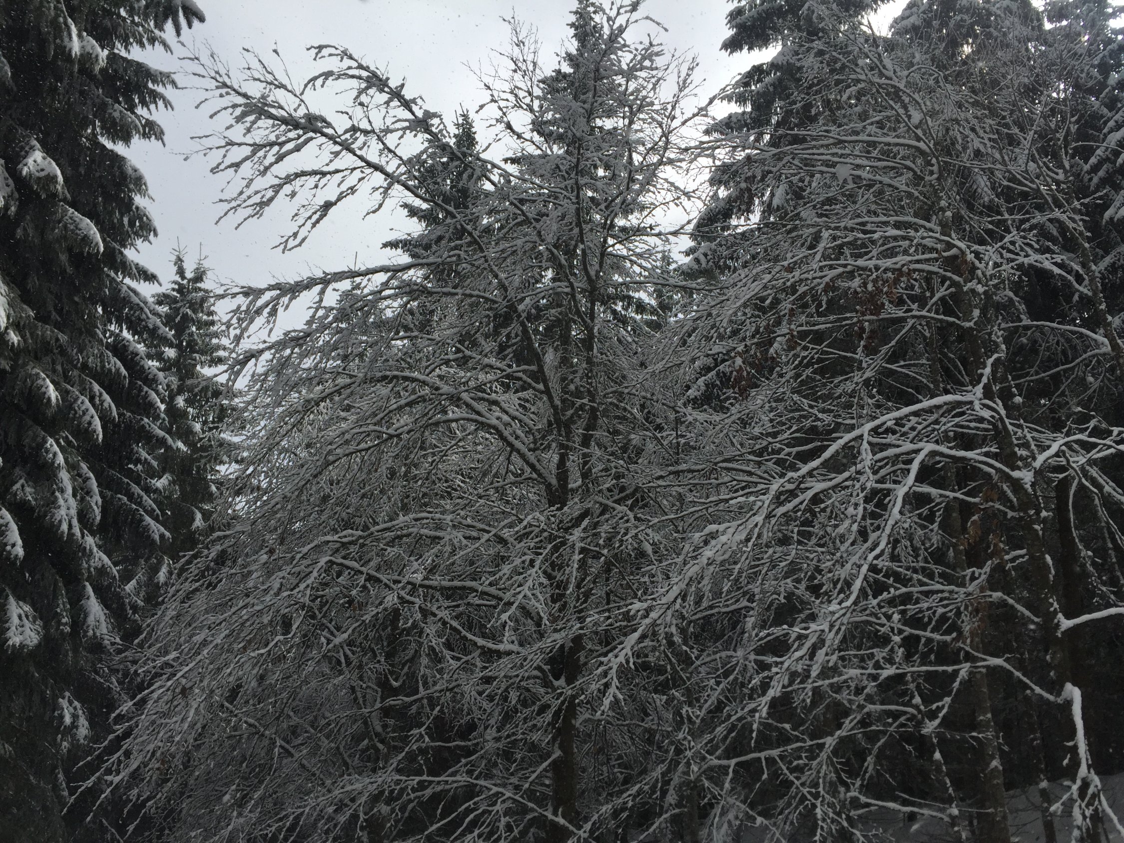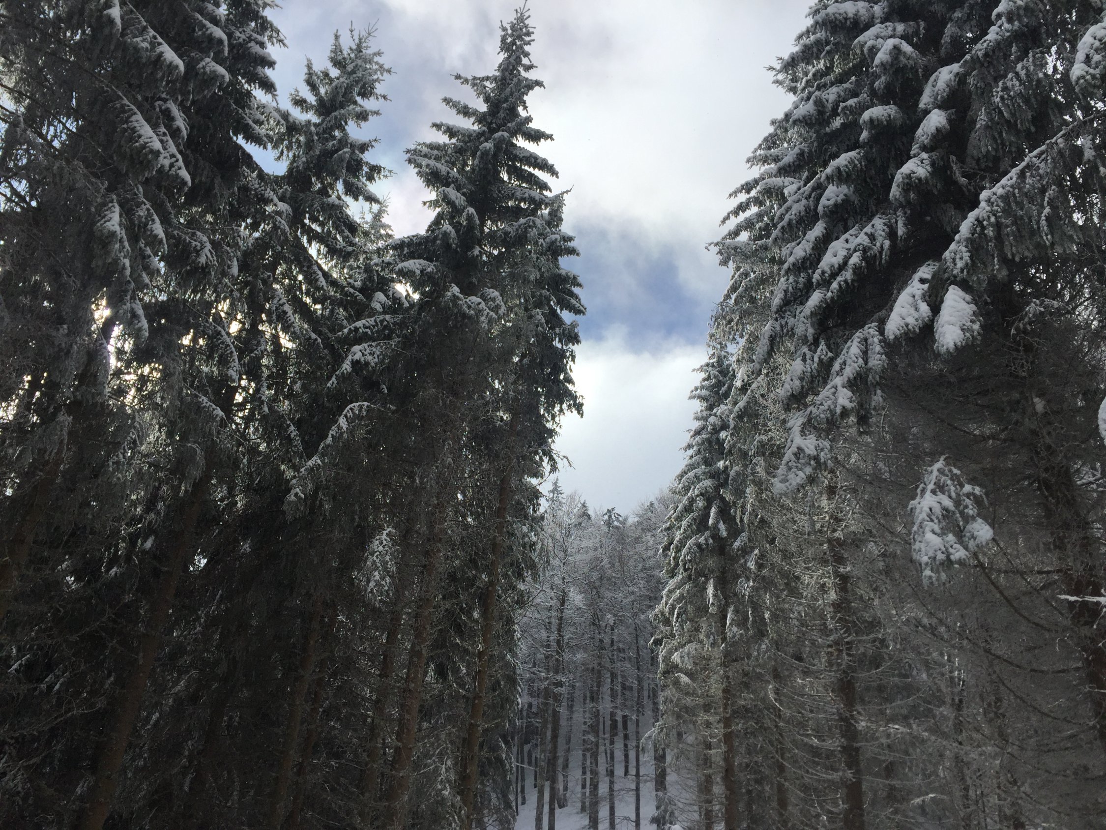 Eine kurze Vormittagstour führte mich heute in den Schwarzwald. Ich war allerdings sehr erstaunt, wie enorm im Gegensatz zu gestern im Diemtigtal hier am Feldbergmassiv die Bise wütete. Daher war es auch ziemlich kalt, und Pulver findet man derzeit hier kaum mehr. Aufstieg vom Rotenbacher Rank durch die Waldabkürzungen aber gut machbar, schön winterlich. Angesichts der Verhältnisse wollte ich mal einen neuen Weg erkunden und ging nicht zur Todtnauer Hütte, sondern vorher links ab Richtung Stübenwasen, es geht ein Weg in diese Richtung. Dem folgte ich zunächst, bis ich bei immer mehr zunehmender Bise den Gipfel oben an einem steilen Waldhang vermutete. Also rasch dort hinauf, und dann stand ich oben, mitten im tobenden Sturm. Das Kartenstudium zu Hause belehrte mich erst darüber, dass ich auf dem Vorgipfel des Stübenwasen gelandet war. Ok, auch gut, ich versuchte vergebens, die Felle anständig zu versorgen, und machte mich rasch an die Abfahrt, befürchtete ich doch ernsthaft, irgendein grösseres Stück Holz auf den Kopf zu bekommen. Die Abfahrt war ganz gut, tragende Kruste, gelegentlich etwas windgeprägter Pulver. Gut durchgelüftet landete ich wieder am PP.