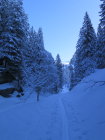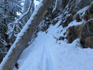 Enge Waldabfahrt nur für geübte Skifahrer.