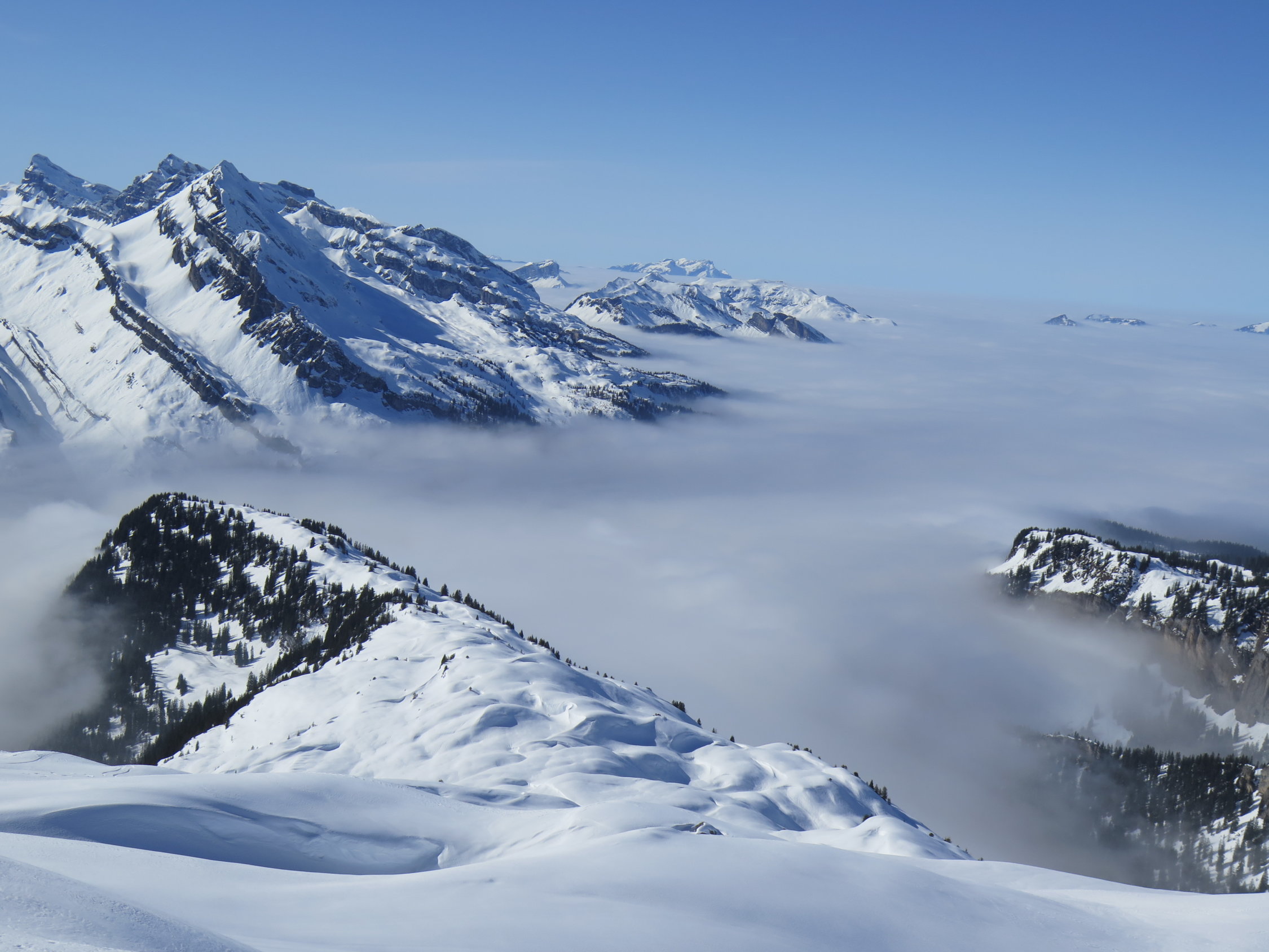 Sehr gute Verhältnisse in allen Schlüsselstellen. Sowohl im Richliwald bei der Querung, im Chlus und am Gipfelhang. Steigeisen am Gipfelhang nicht unbedingt notwendig, aber besser und vorallem ein Pickel ist sehr zu empfehlen.