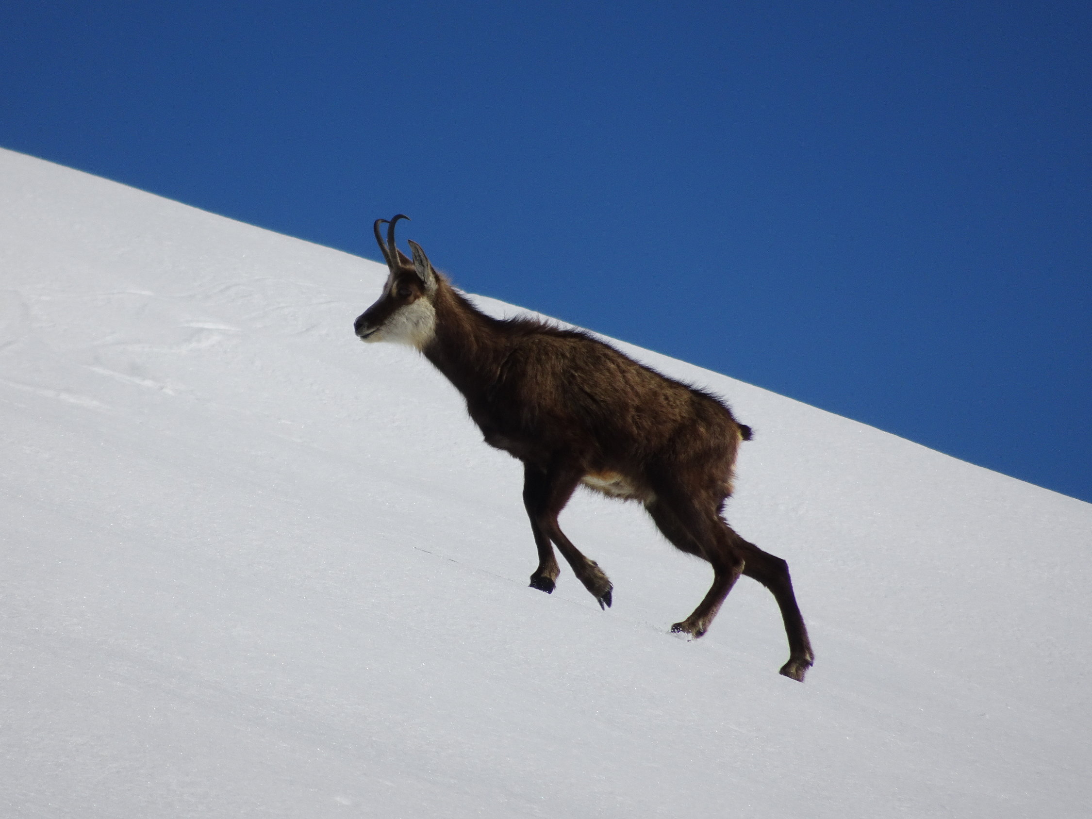 Der Westhang hat heute viel Sonne erhalten, so ist der Schnee, auch die tragende Schicht, entsprechend angefeuchtet.