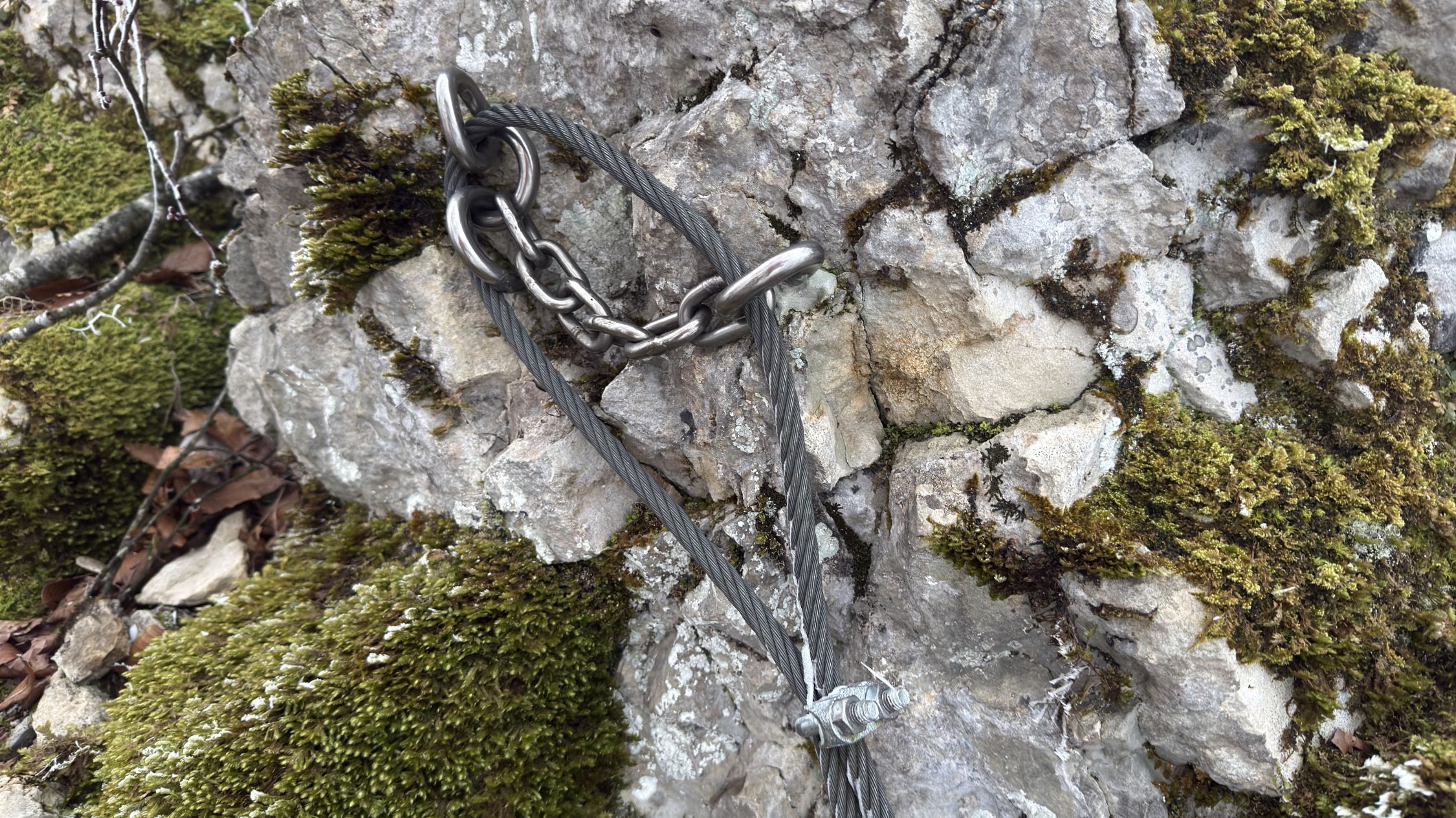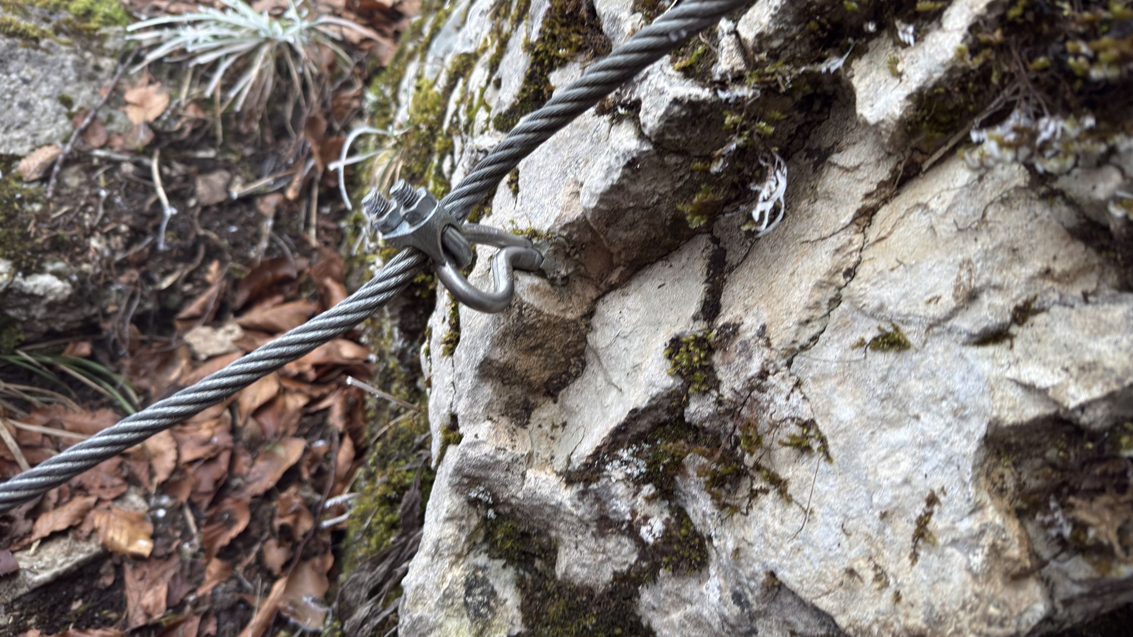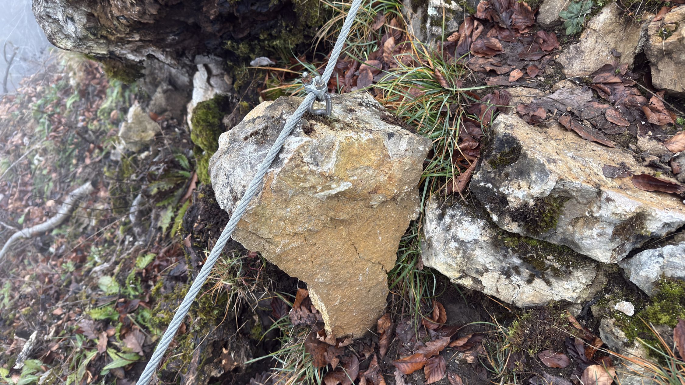 Die vorhandenen Installationen entsprechen weder den sicherheitstechnischen noch den normativen Anforderungen an einen Klettersteig. Das angebrachte Seil wurde nicht für eine Nutzung als Klettersteig eingerichtet oder dimensioniert.