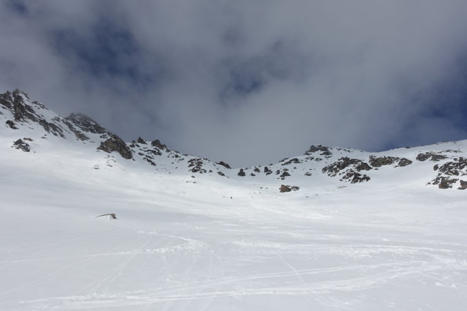 Einsamer Aufstieg von S-charl, die meisten GipfelbesucherInnen kommen von der Sesvennahütte. Gletscher sehr gut eingeschneit. Zur Zeit Gipfelaufstieg mit Ski bis ca. 100hm unter dem Gipfelkreuz möglich Skidepot auf Schulter am Nordgrat - Fussaufstieg direkt zum Gipfelkreuz ohne Steigeisen. Abfahrt nach Süden zum S-charljoch (unter 2600 sulzigeVerhältnisse). Zwischenzeitlich etwas steinig. Dann zurück nach S-charl.