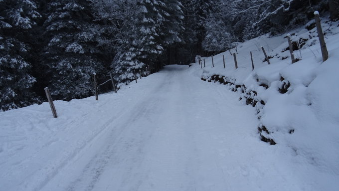 Strasse Griessalp Tschingel noch genügend Schnee für Aufstieg und Abfahrt, teils ein bisschen vereist