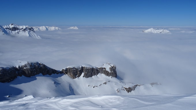Unterhalb 2100m bis Tschingelsee heute alles im Nebel dafür wieder Pulverschnee auf tragender Unterlage.