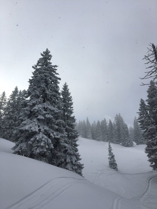 Unten Nebel und leichter Schneefall, die Baüme weiss eingezuckert - eine zauberhafte Märchenlandschaft. Auf dem Gipfel Sonne, das Nebelmeer zu Füssen und wunderbare Rundsicht auf den Säntis, die Glarner und Bündner Alpen. Leider wehte auch heute in der oberen Hälfte ein erbarmungsloser Wind, wie dieser für die Churfirsten typisch ist. Kalt.