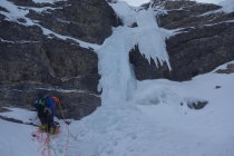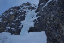 Nach wie vor gute Eisverhältnisse, Stände gebohrt und (noch) frei. Zur Zeit reine Eistour ohne Mixed-Passagen. 4-6 Schrauben sollten reichen. Max. WI5- (kurz).