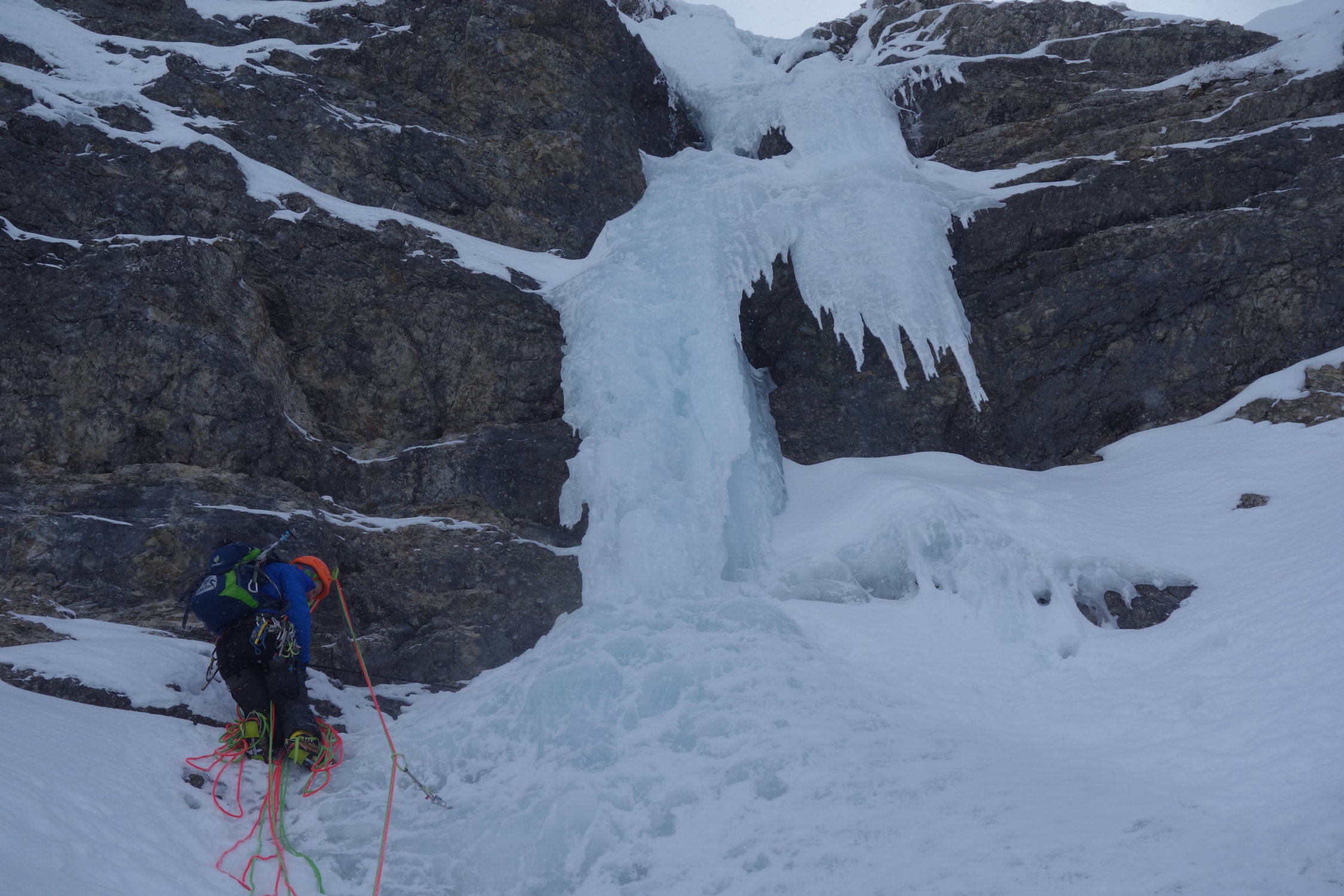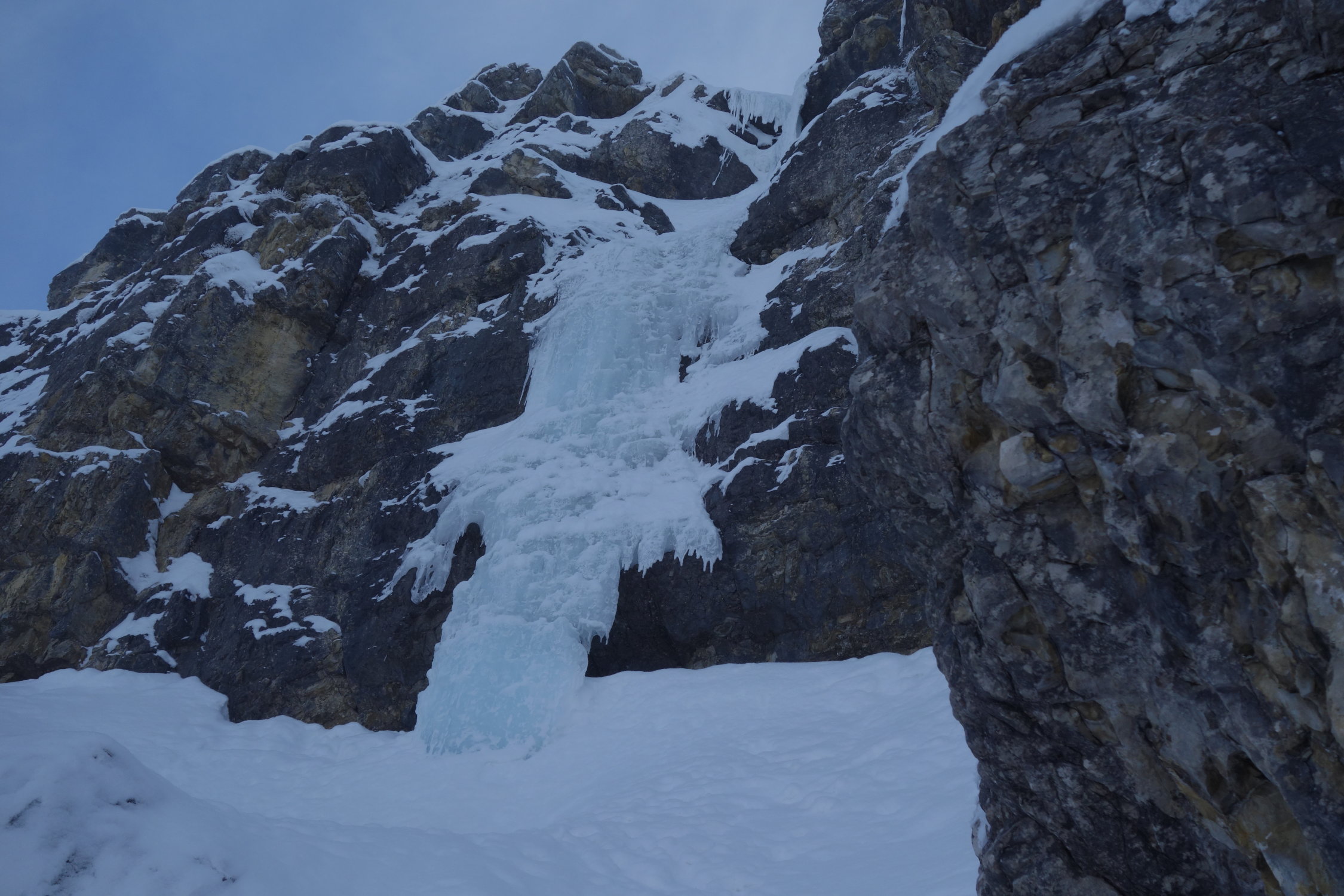 Wir sicher noch eine Weile gehen, aber bei Erwärmung nicht nur die Eisstabilität beachten, sondern auch das große Lawineneinzugsgebiet oberhalb und den Wächtensaum am Ausstieg.