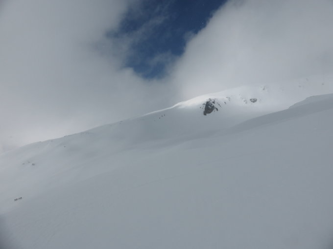 Wetter: Teilweise Nebel bis zum Gipfel, speziell Richtung Rhonetal, Richtung Faldumgrund/Lötschental besser, aufgrund des Nebels nur teilweise Sonne, meist schwachwindig(Bise spürten wir nicht stark), daher war auch die Temperatur recht angenehm