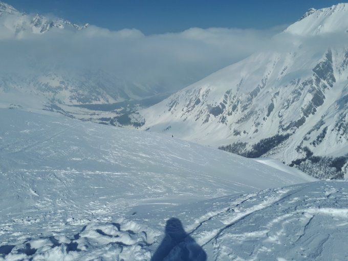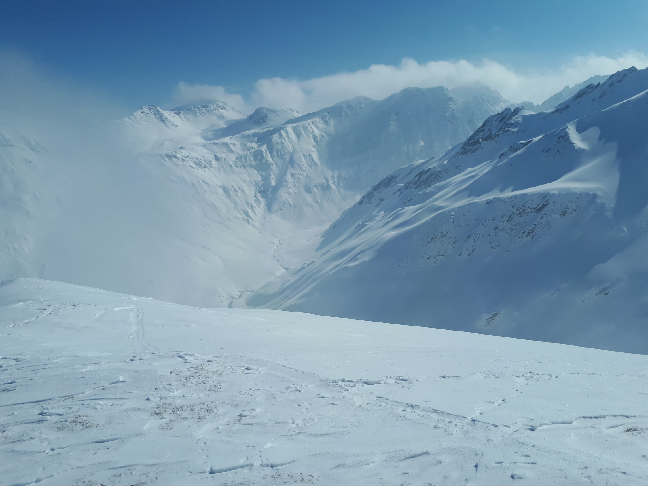 Meist Hartschnee bei Aufstieg und Abfahrt, vereinzelte Stellen auch mit Bruchharst und andererseits mit Pulver.