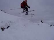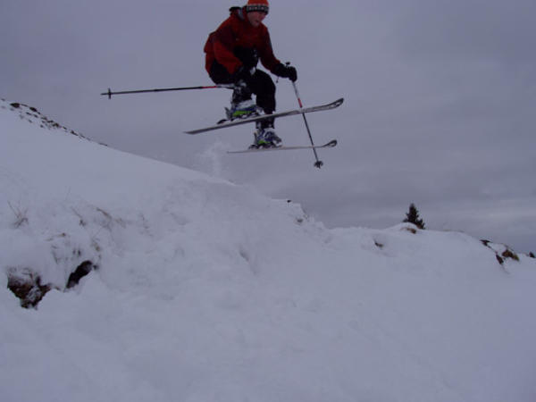 Im Talboden ca. 10-15cm durchfeuchteter Schnee. Im Wald bis zum Strichboden dann deutlich mehr Schnee allerdings auch ziemlich feucht. Dann die grosser Ernüchterung: Die Rücken aller Churfirsten sind aufs übelste verblasen und ans fahren ist erst gar nicht zu denken. Wir entscheiden uns zur Umkehr und bauen uns stattdessen einen kleinen Kicker, was der Tour noch etwas Sinn gab. Kurze Passagen bei der Abfahrt waren zwar gar nicht mal so übel, aber der steinige Untergrund hinterliess doch spuren...