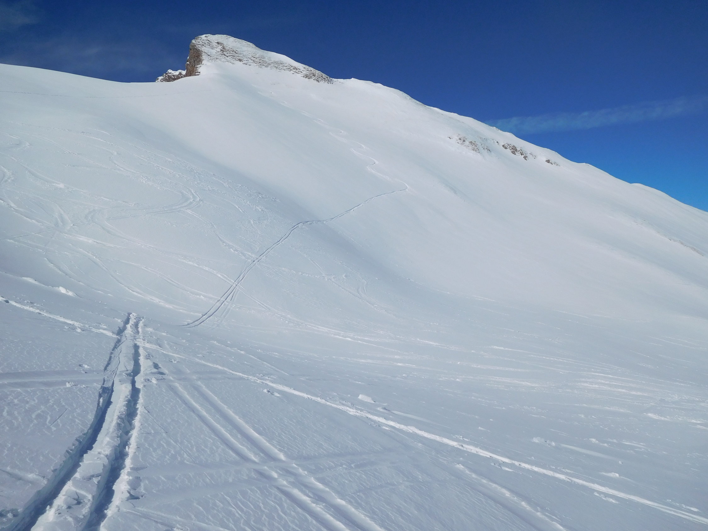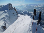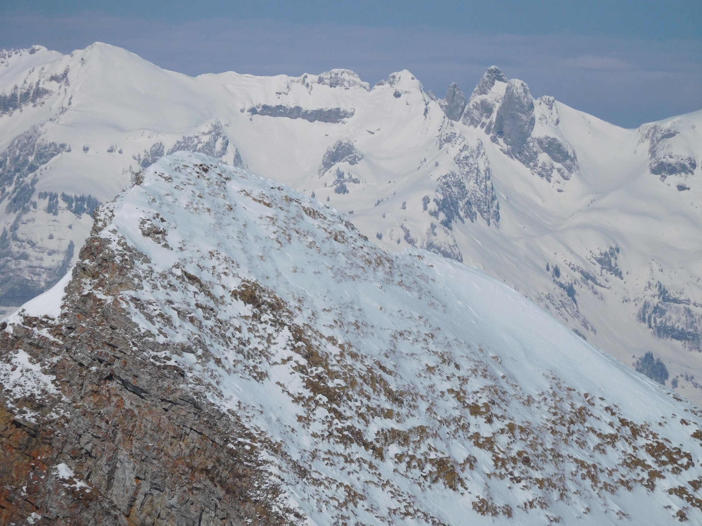 Beim Aufstieg Abstecher zum Sichli über N-Grat - teils vereist - bis zum Skidepot am Grat Harscheisen notwendig!