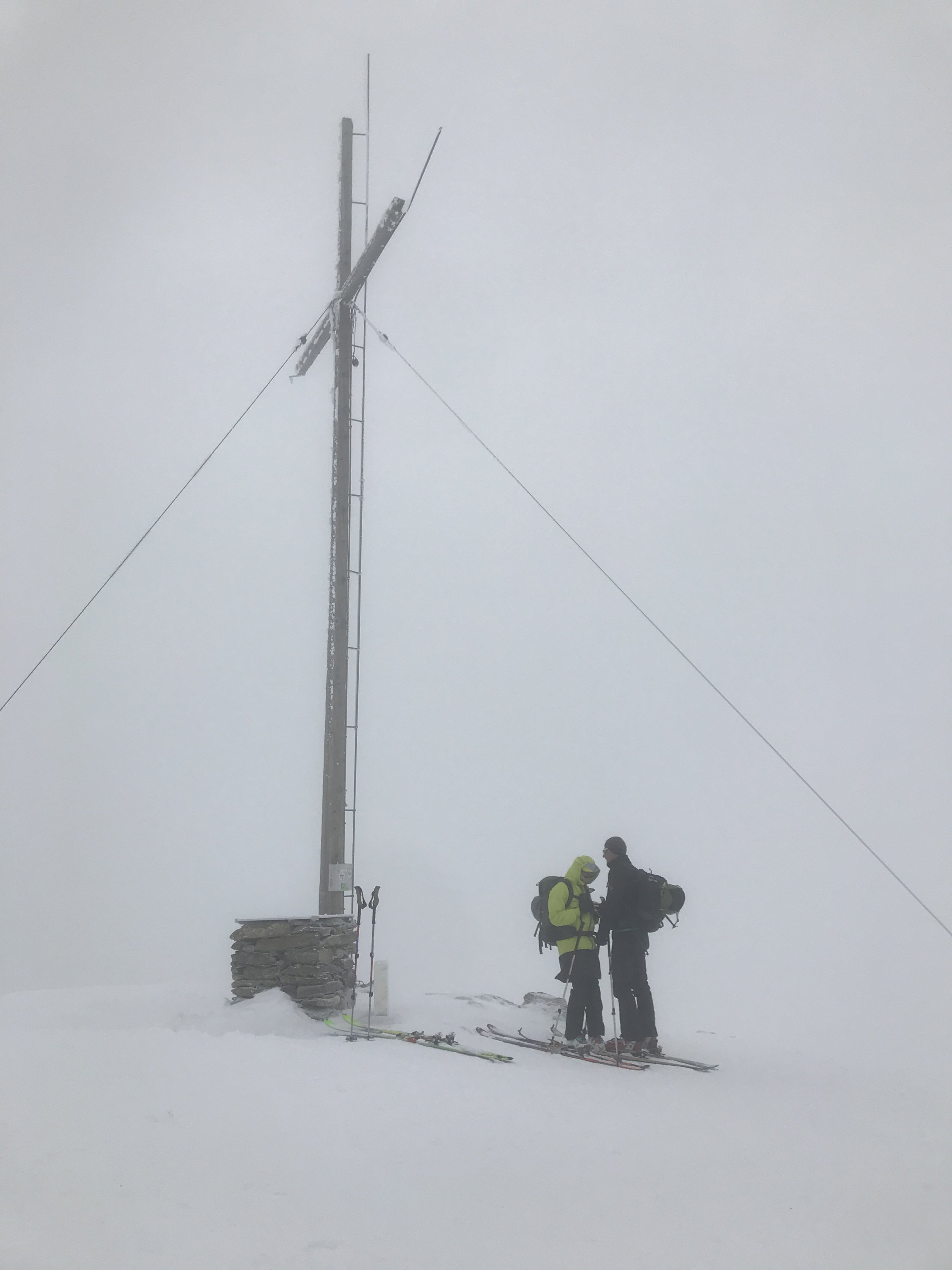 Im Aufstieg hart und gefrorene Unterlage. Abfahrt in den NW-Hängen noch immer Pulverschnee.