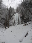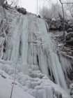 3. Sl, 35 m, WI5: Über die vor einem liegende Wand gerade aufwärts, teilweise röhriges Eis, 90°, oben abflachend nach rechts zu einem Baum (Stand) am oberen Ende des Eisfalles.