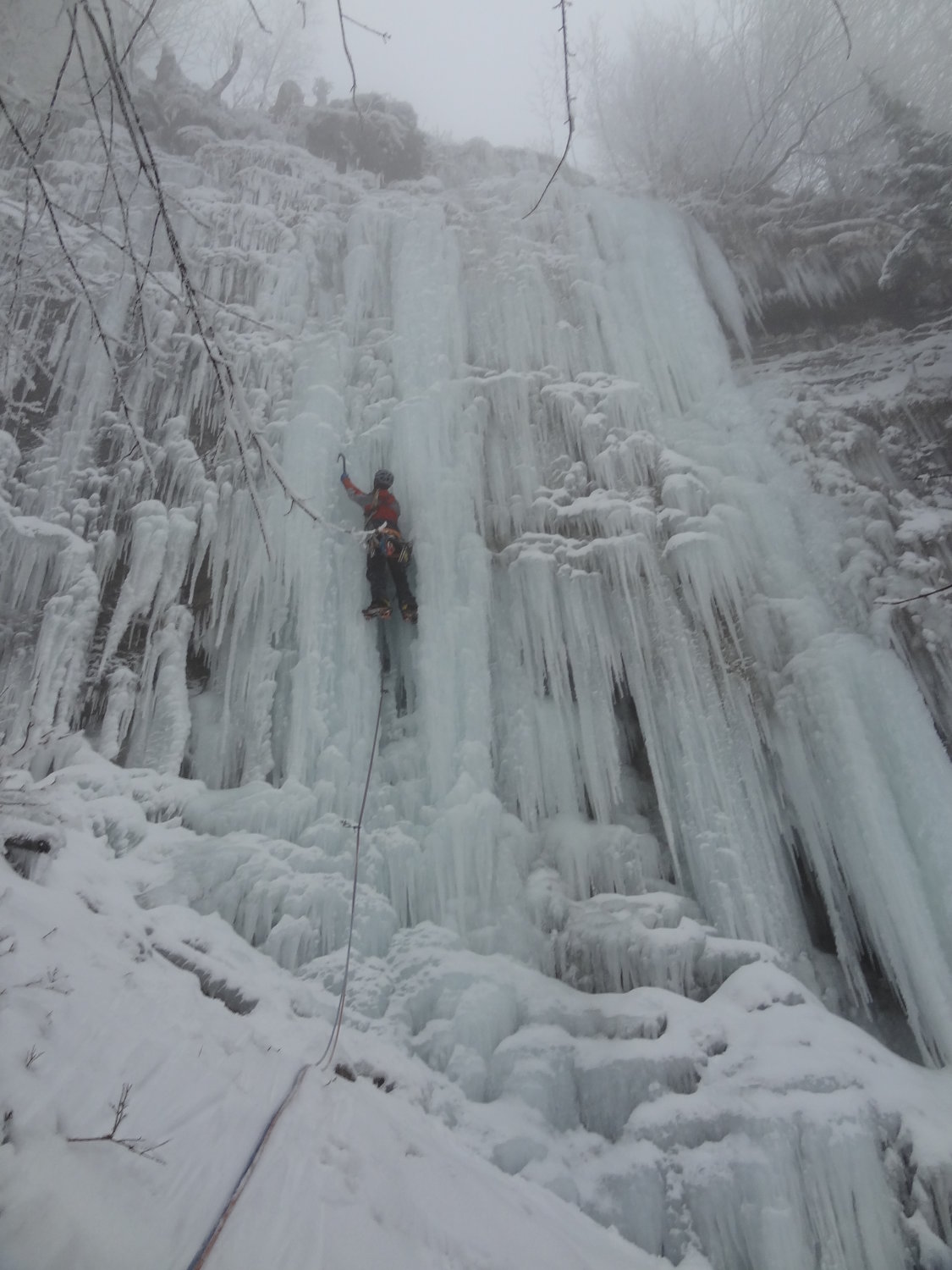 In den mittleren Eisfall sind wir zuerst eingestiegen. Eis zum klettern genügend dick, jedoch auch röhrig und schlecht sicherbar. Daher Abbruch nach ca. 10 m.