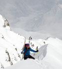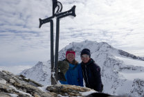 Wir mieden die Kälte in der Nordflanke und suchten die Sonne. Und dank der Kälte hatten wir keinen Zeitdruck, und der Schnee blieb trotz Sonneneinstrahlung pulvrig. Und trotz der Kälte schwitzten wir beim Stapfen im Couloir ;-).
