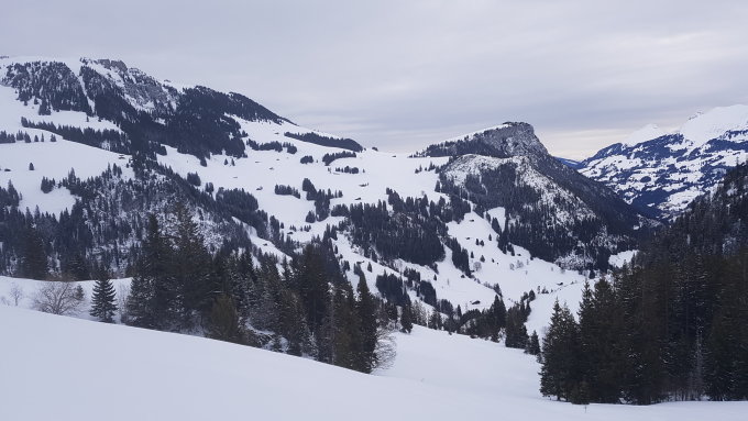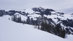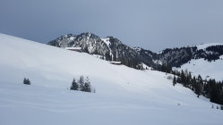 Ab eine Höhe von ca. 1450 m dann Pulverschnee auf harter, nicht immer homogener, Unterlage. Zum Teil windverfrachtet bis auf Gipfel.
