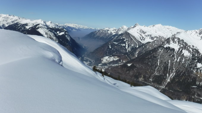 Das kurze Sonnenfenster genutzt: Tourenbeginn um 09:00 Uhr bei -2°C und wolkenlosem Himmel bevor es nachmittags den Schnee gab.
