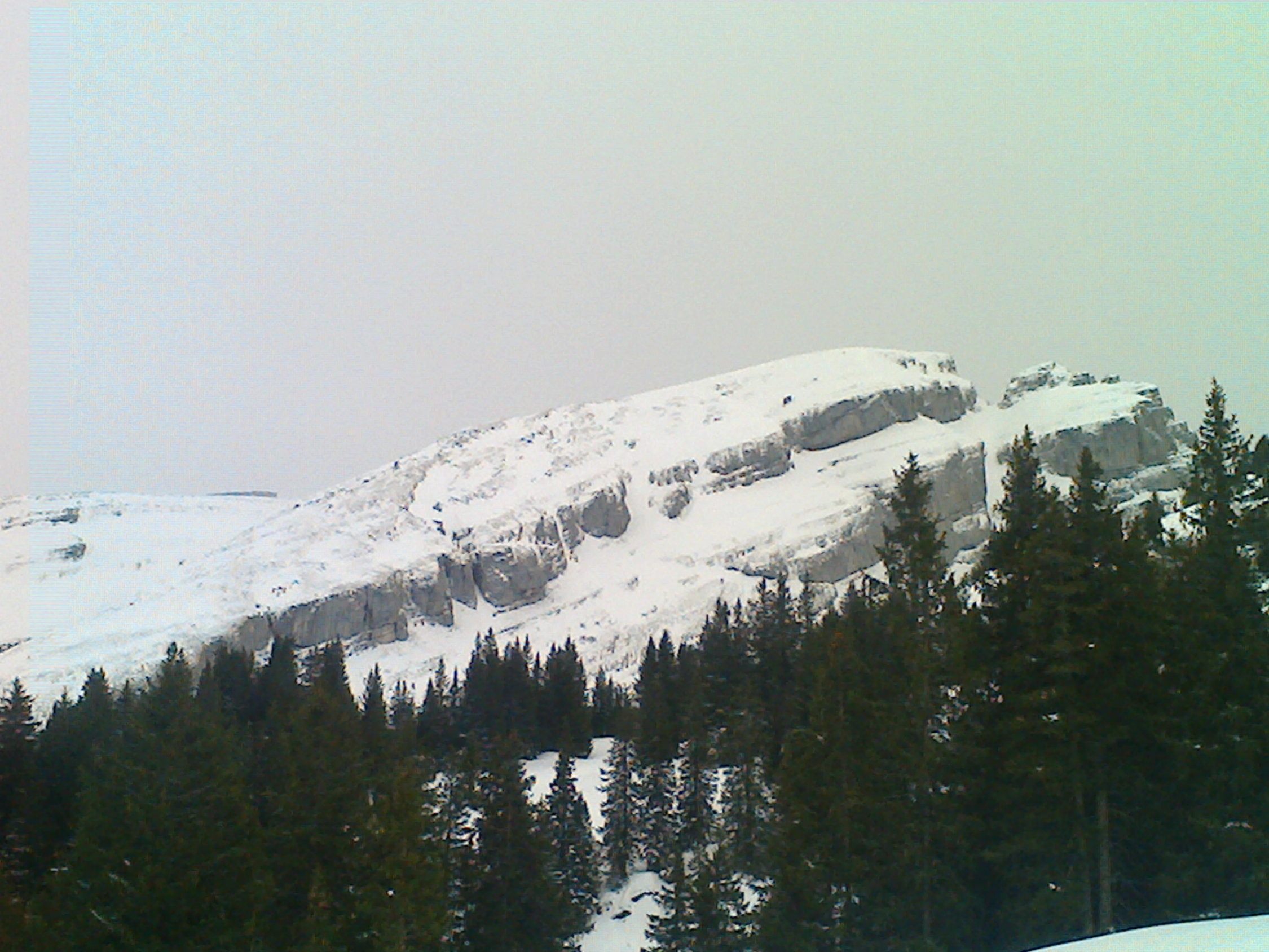 Brisi: genug Schnee, aber hart. Mit Harscheisen gut machbar. Für die Abfahrt war ein weiches Triebschneeband vorhanden. Hier war es um 14Uhr dann wieder windstill.
