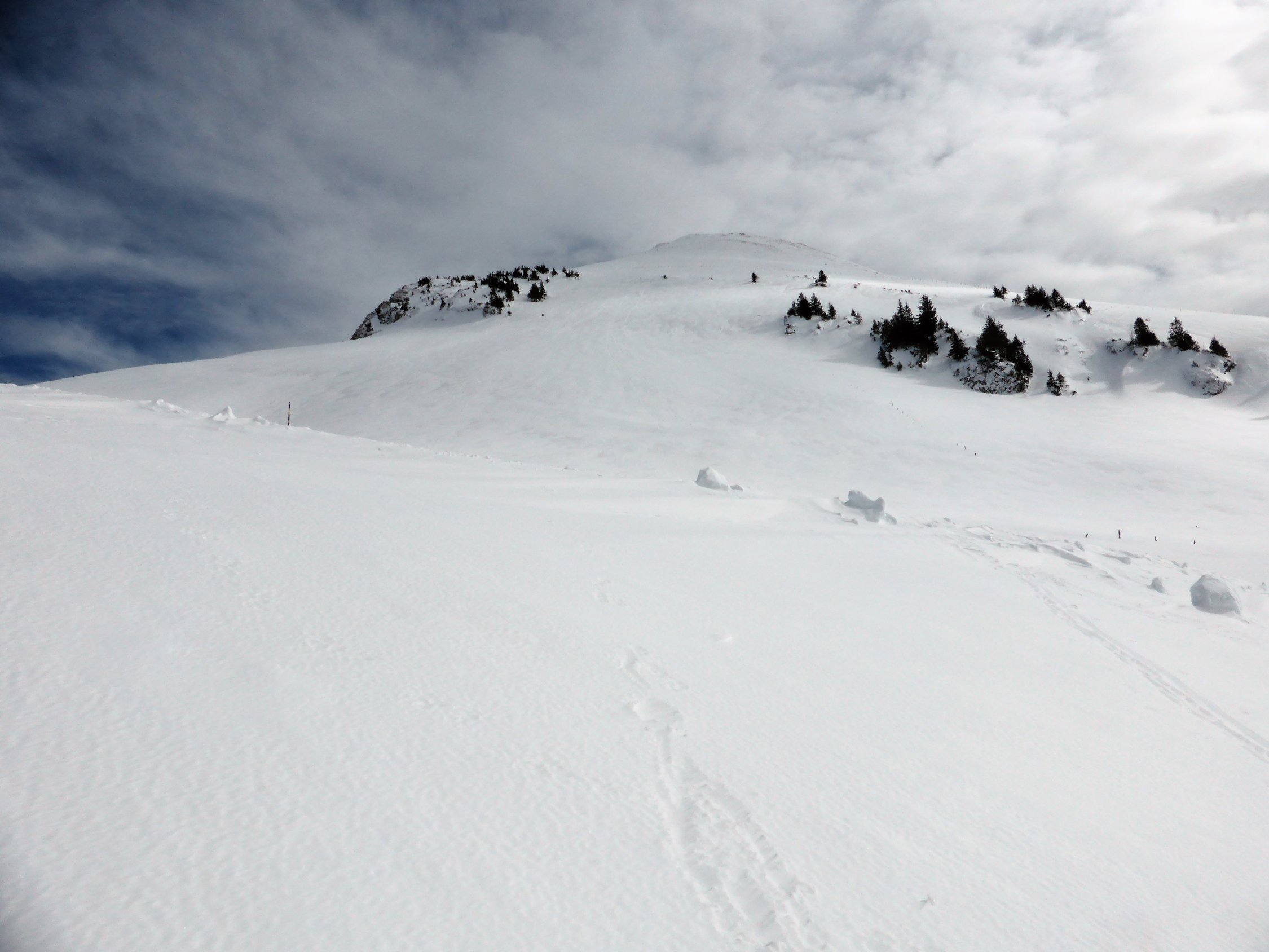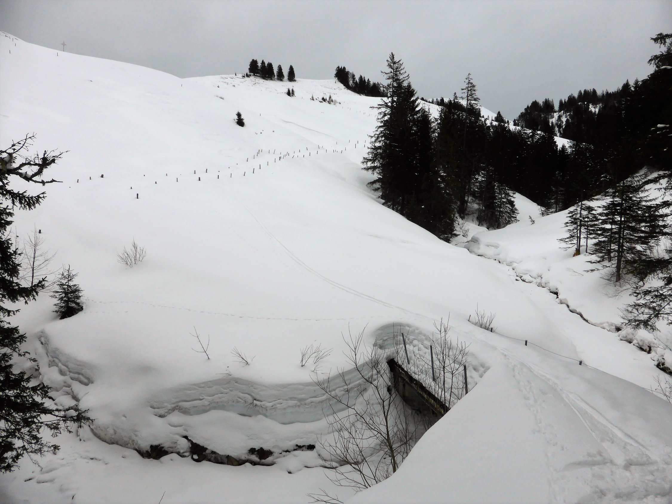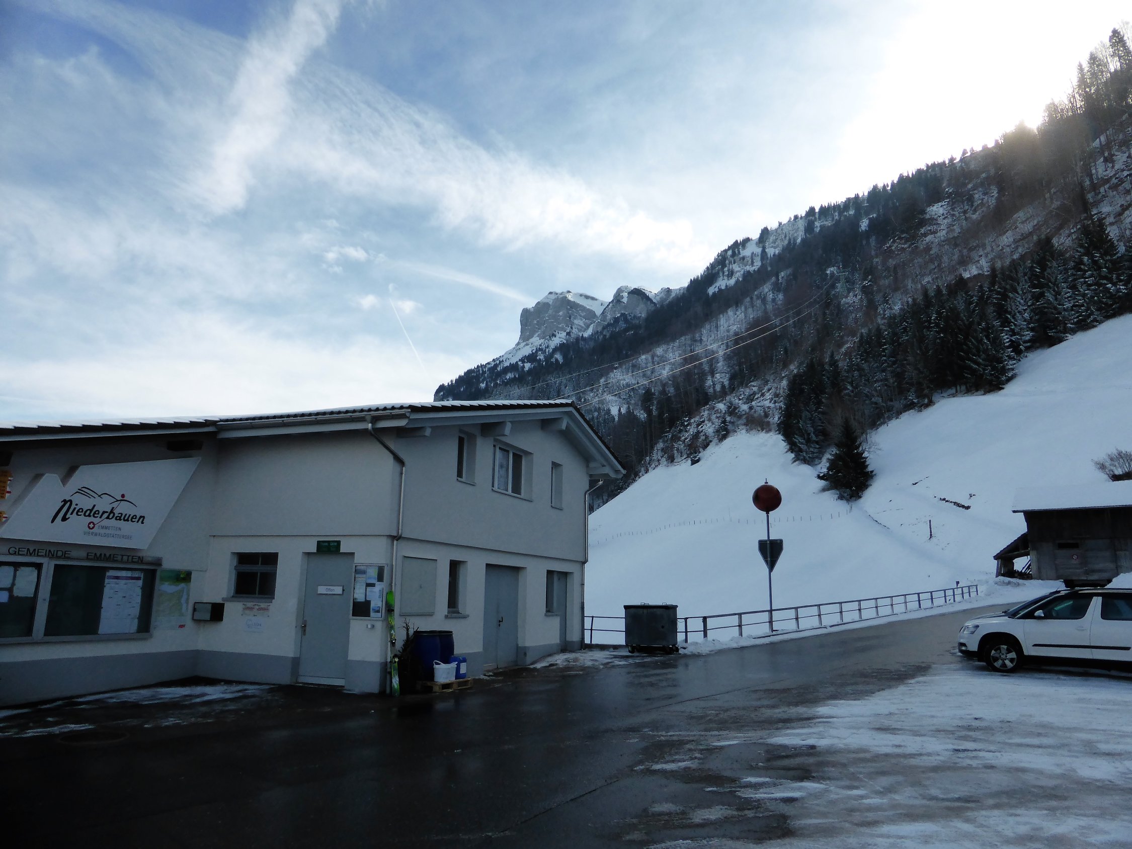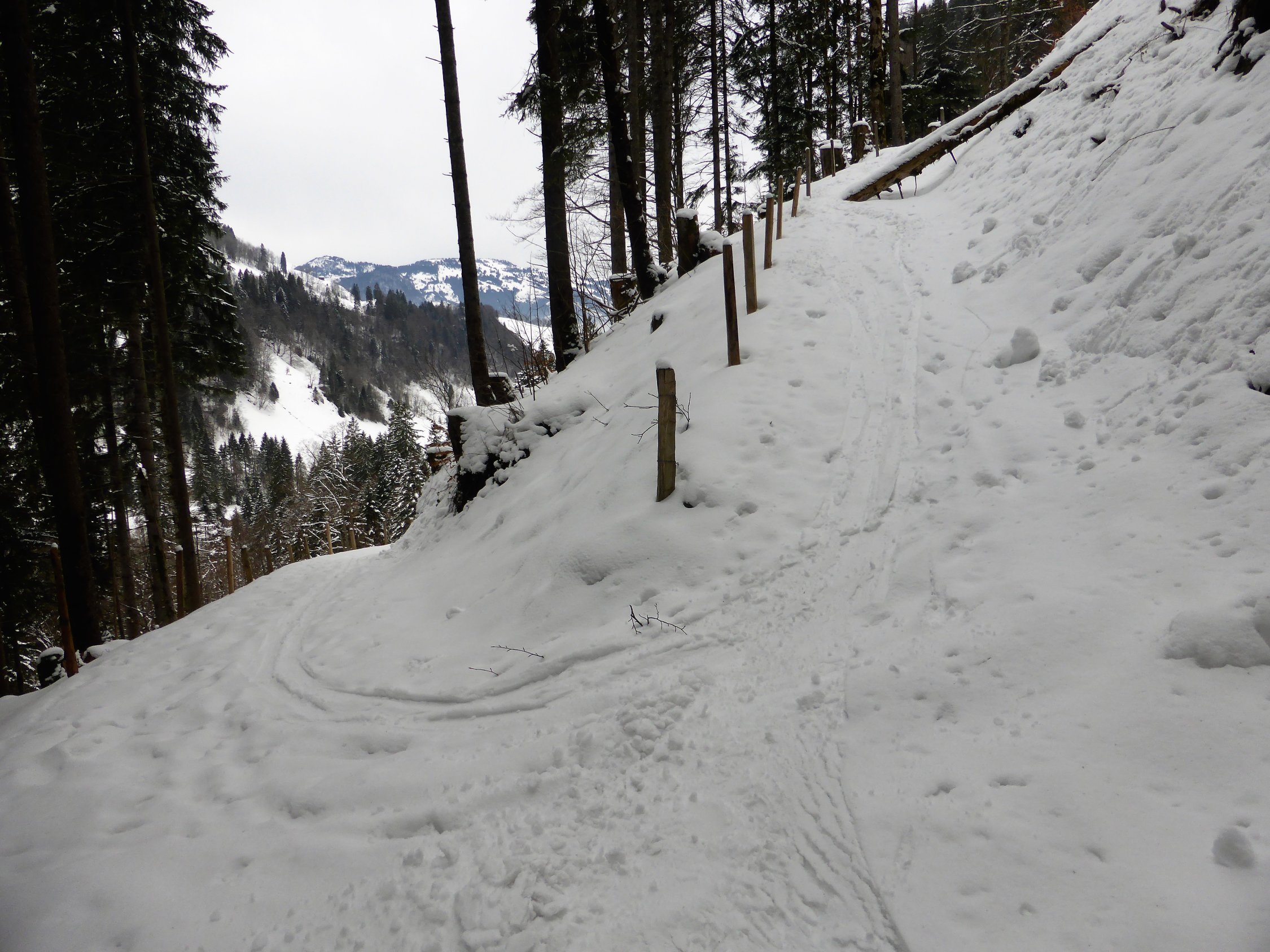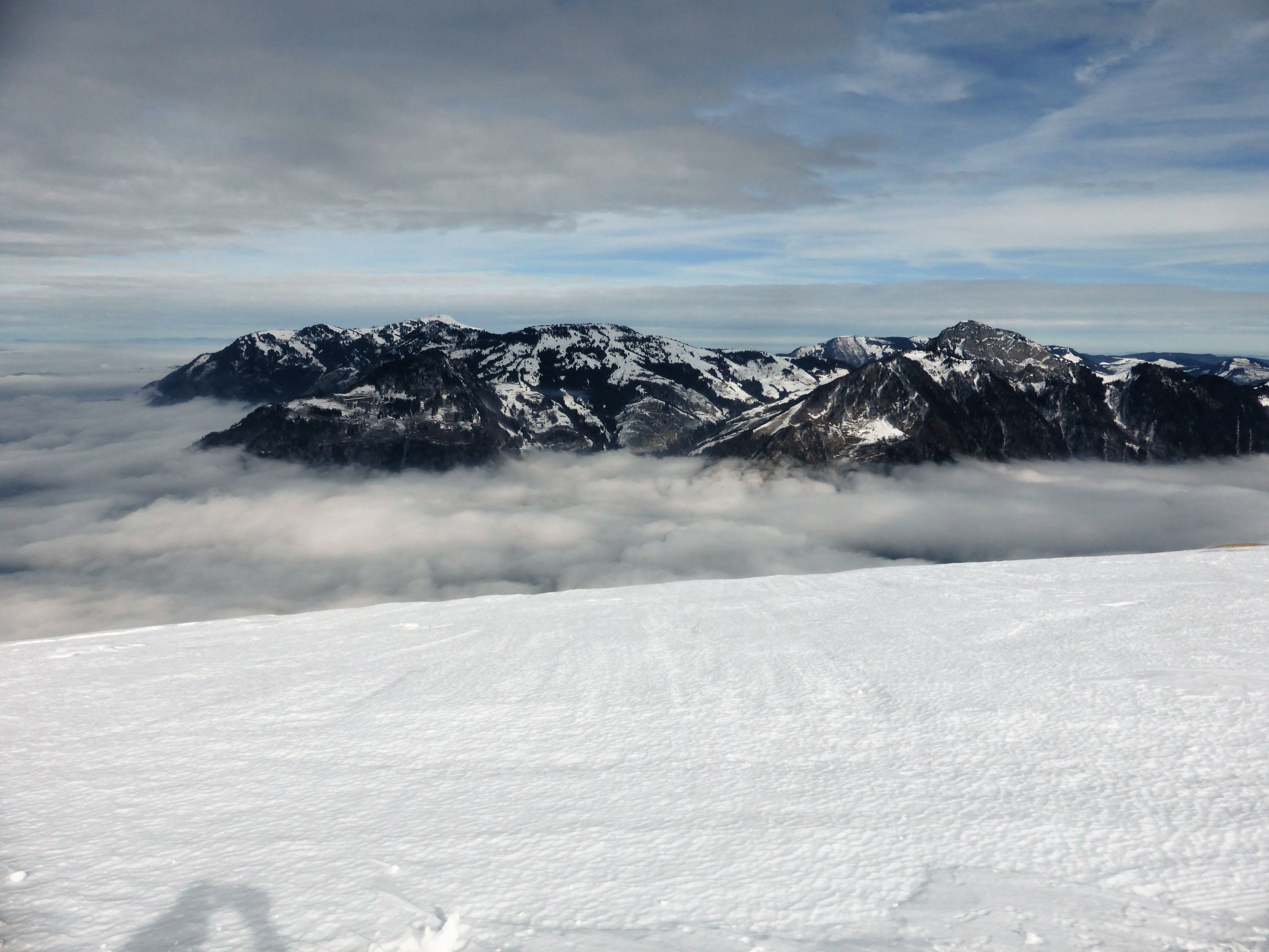 Wetter: zu Beginn noch etwas Sonne, jedoch näherte sich die Schlechtwetterfront von Westen, dank Fön(mässig in Böen stark) jedoch für die ganze Tour rechtpassable Bedingungen, Temperatur zwischen -2 bis +2Grad