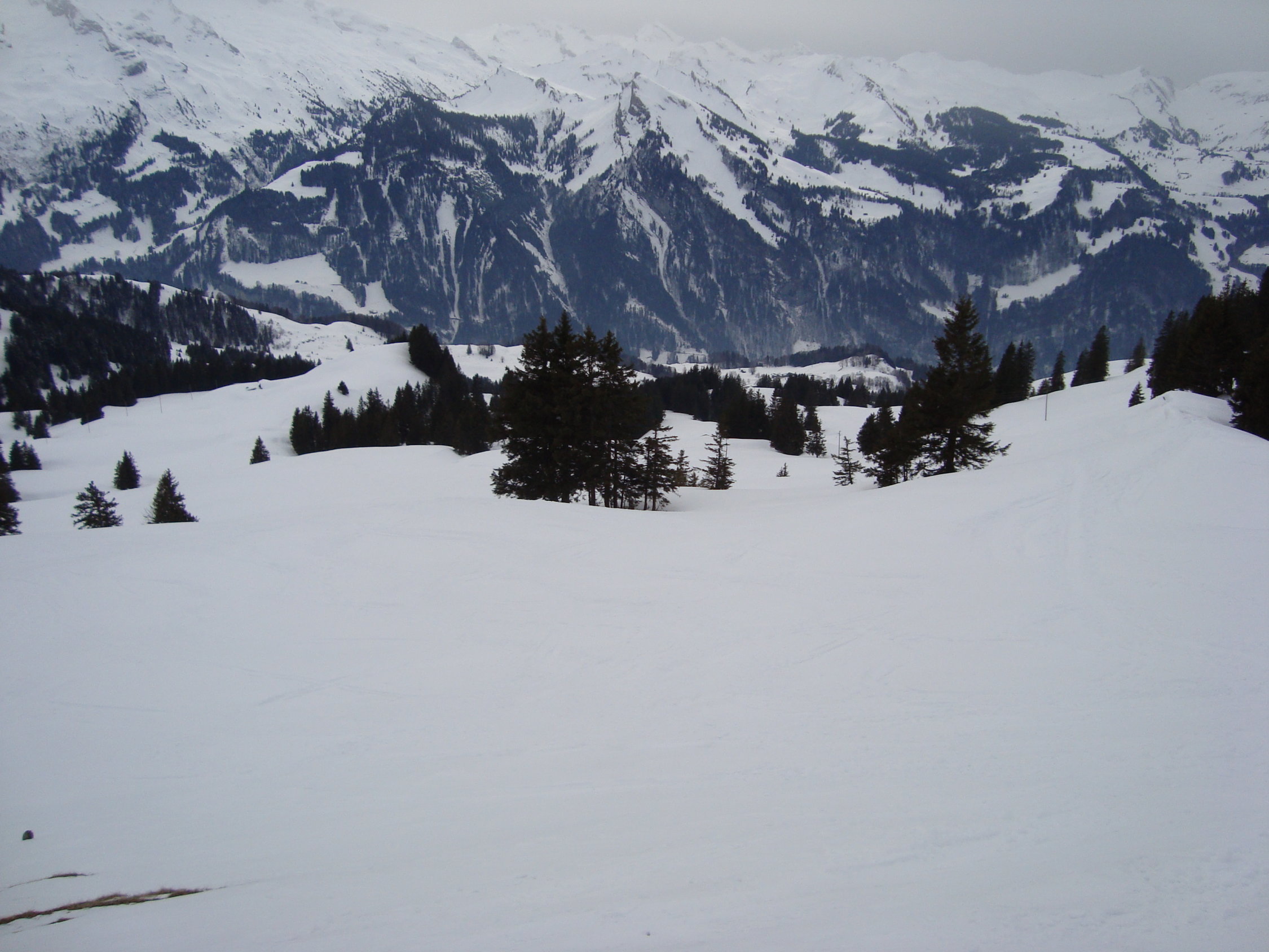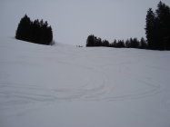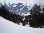 Danach nochmal Richtung Laucherenstöckli hochgefellt und da wo die Hänge noch unzerfahren und etwas steiler sind, über meine Aufstiegsroute zum Ausgangspunkt zurückgefräst. Auf der Seite ist der Schnee dann schon deutlich schwerer und feuchter gewesen, jedoch noch immer gut drehend, also nix zum jammern.