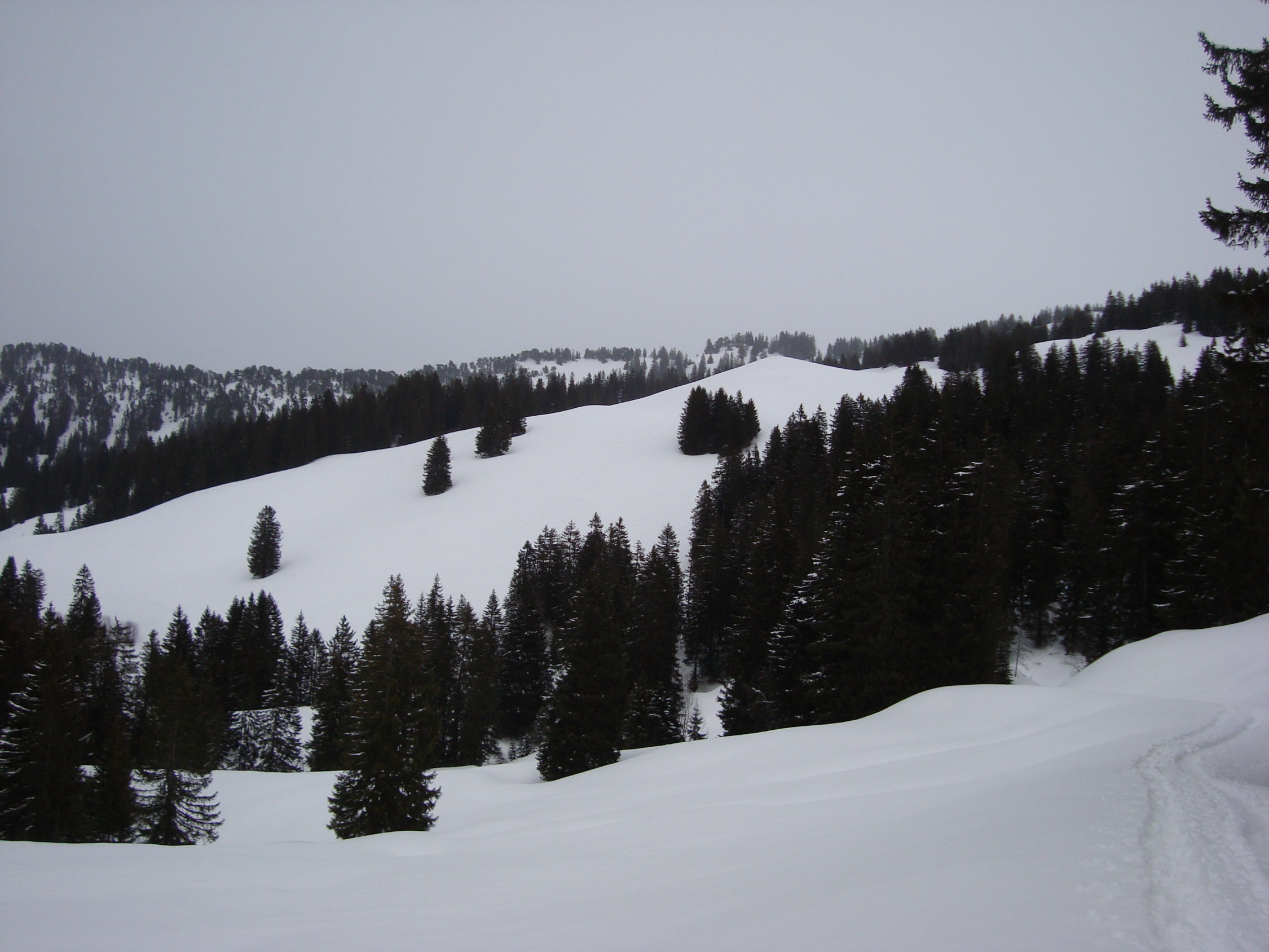 Ich bin nicht entlang der Abfahrtspiste aufgestiegen, sondern im Aufstiegssinne links vom Bachtobel gerade gen Sternenegg und oben den Grat zum Gipfel. Das ist aus meiner Sicht die schönere Aufstiegsroute.