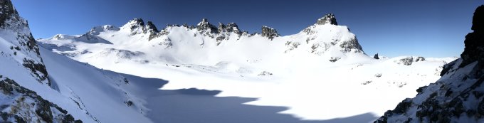 Tolle Verhältnisse. Frischer Pulver vom Gipfel bis runter durch das Täli nach Gaffia. Am Pizolsattel und auf dem Gipfel kräftiger Wind.