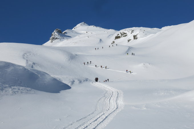 In der Dorfmitte in Hinterrhein gibt es ein gemütliches "Beizli". Durstlöscher-Treffpunkt nach einer Skitour. Sehr zu empfehlen. Auch waren ca. 50 Italiener am Berg die bis auf zwei Personen alle das Chilchalphorn zum Ziel hatten.