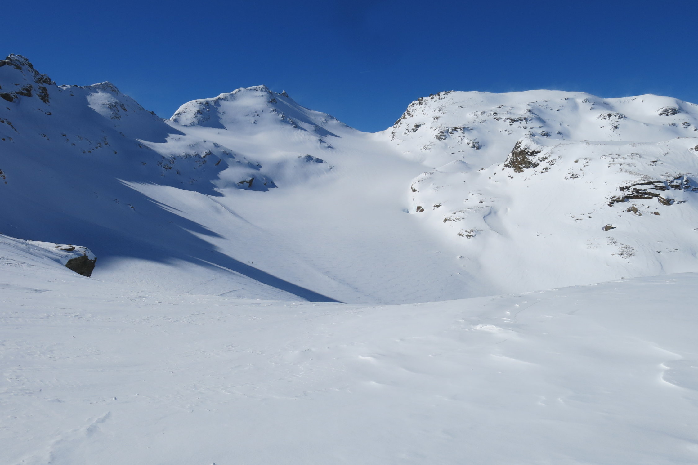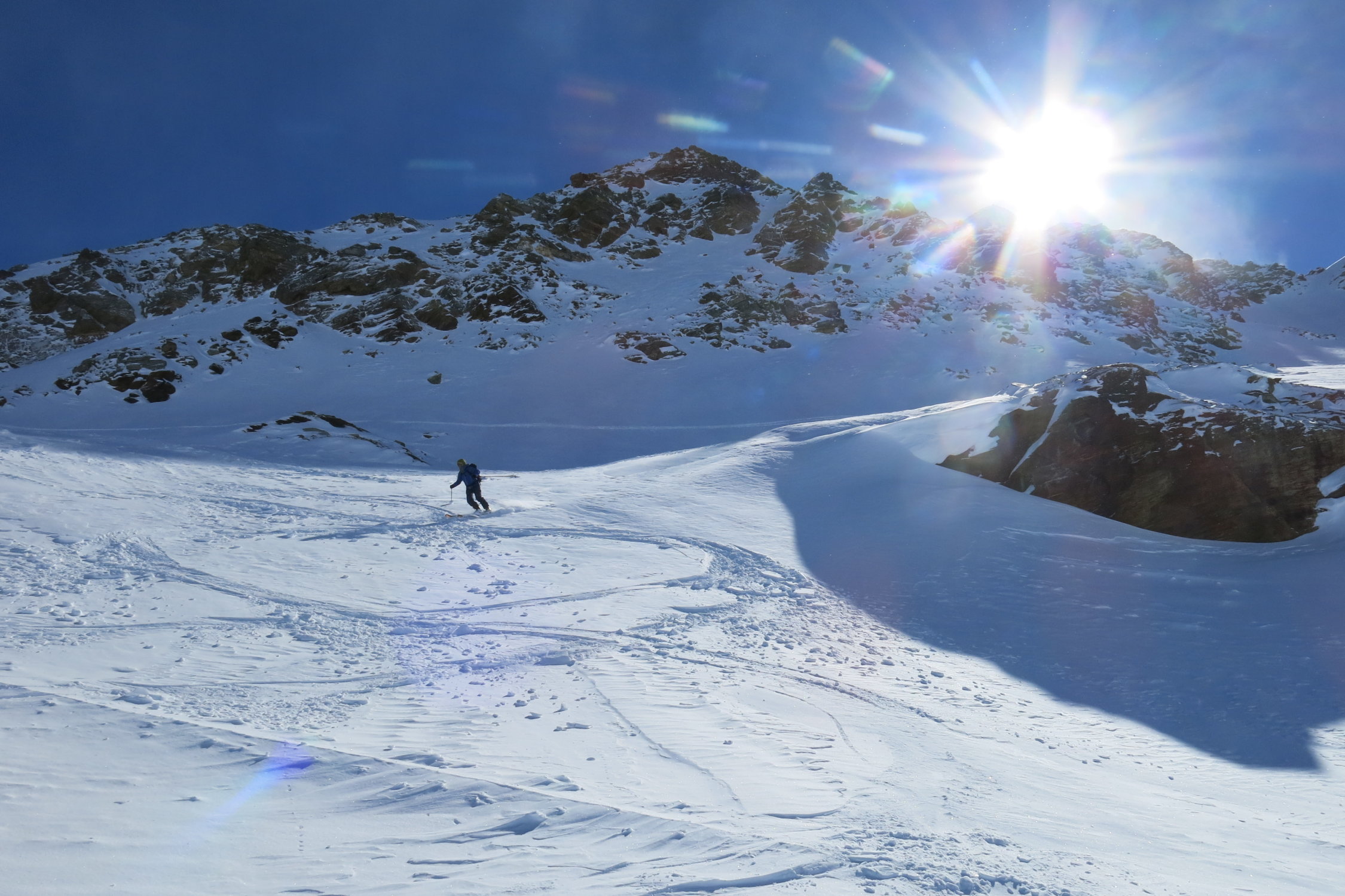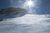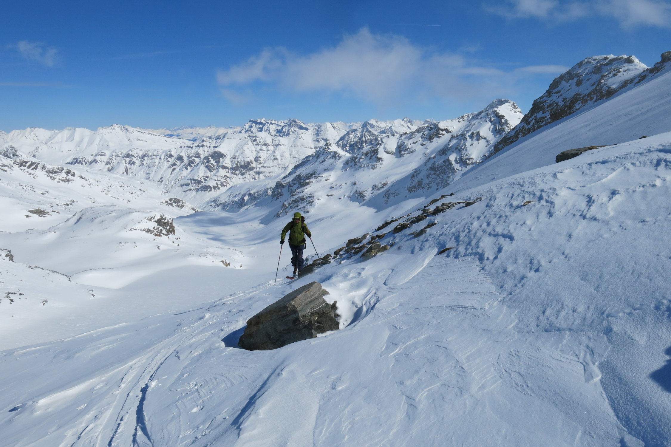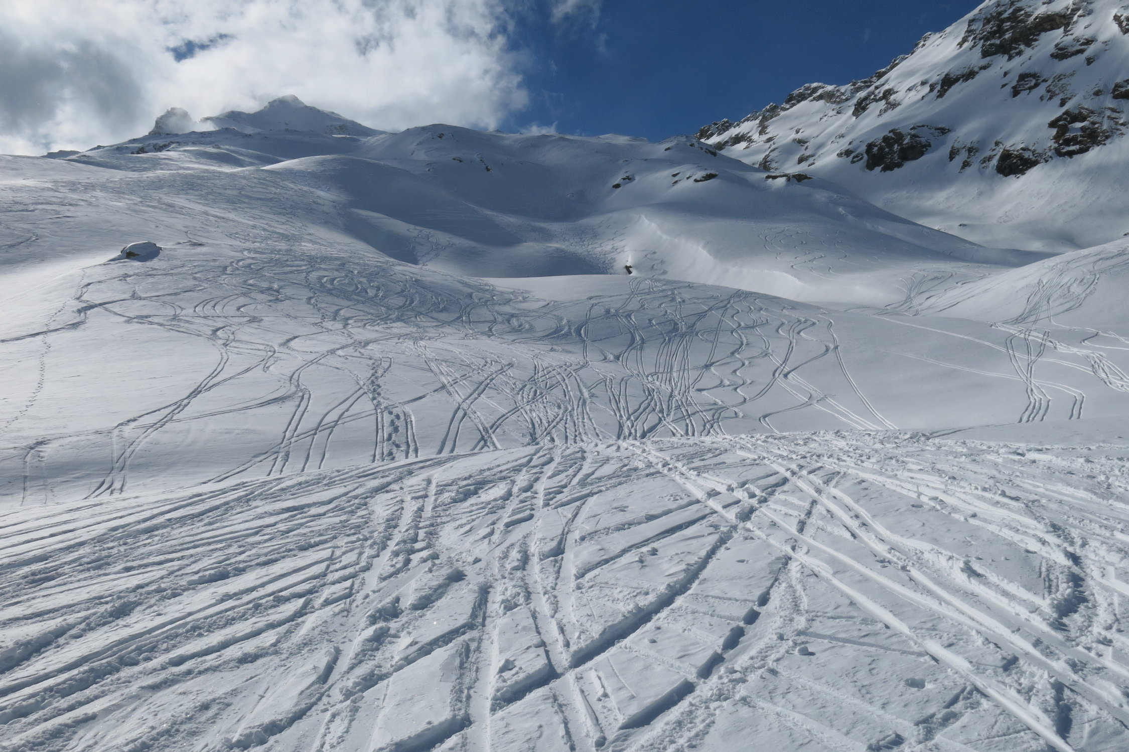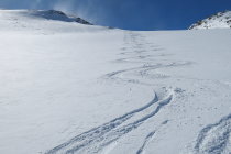 Im Ganzen Gebiet ausreichend Schnee vorhanden. Im Aufstieg sind alle Aufstiegs- und Abfahrtsspuren mit dem spärlichen Neuschnee der letzte Tage verwischt worden. In Mulden und geschützten Hanglagen angesammelter Pulverschnee, ansonsten windgepresster Hartschnee mit teils rutschigen Passagen im Aufstieg. Gleiche Schneesituation von der Chilchalplücke auf den Fanellgletscher und Aufstiegsroute zum Lorenzhorn. Die Abfahrt entsprechend den Schneeverhältnissen.