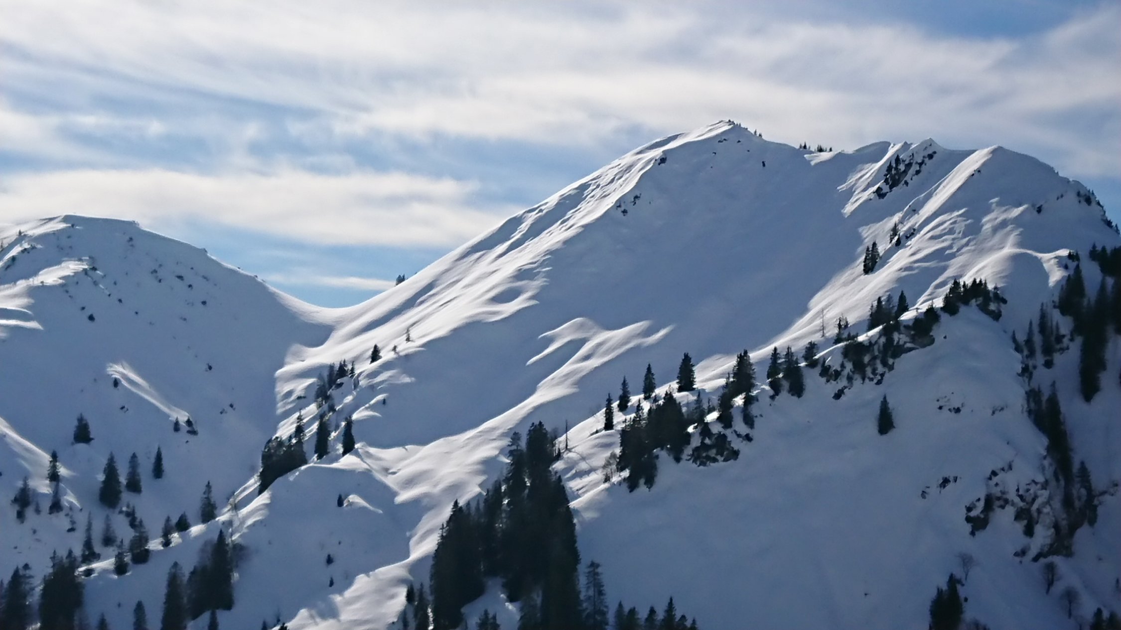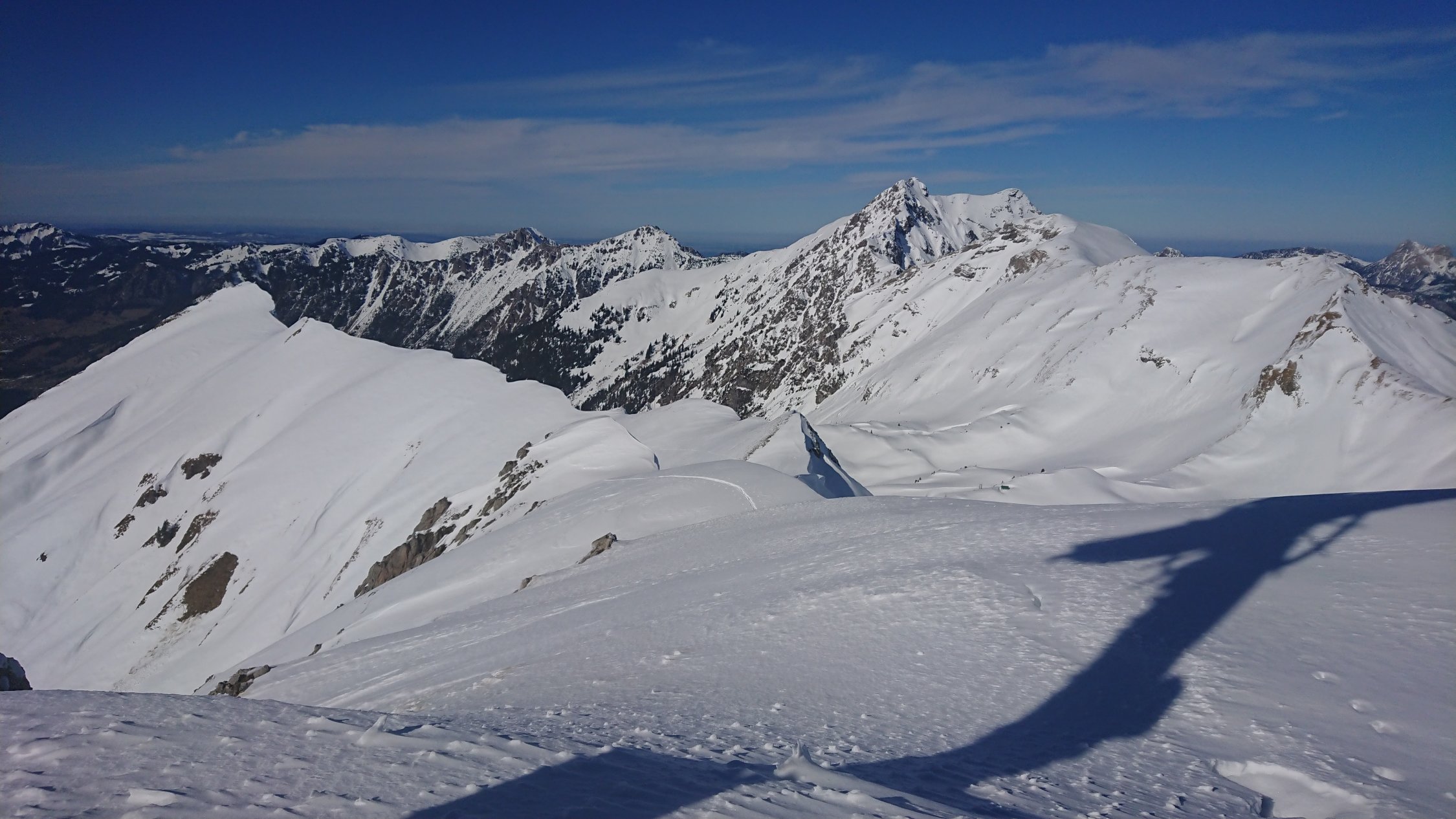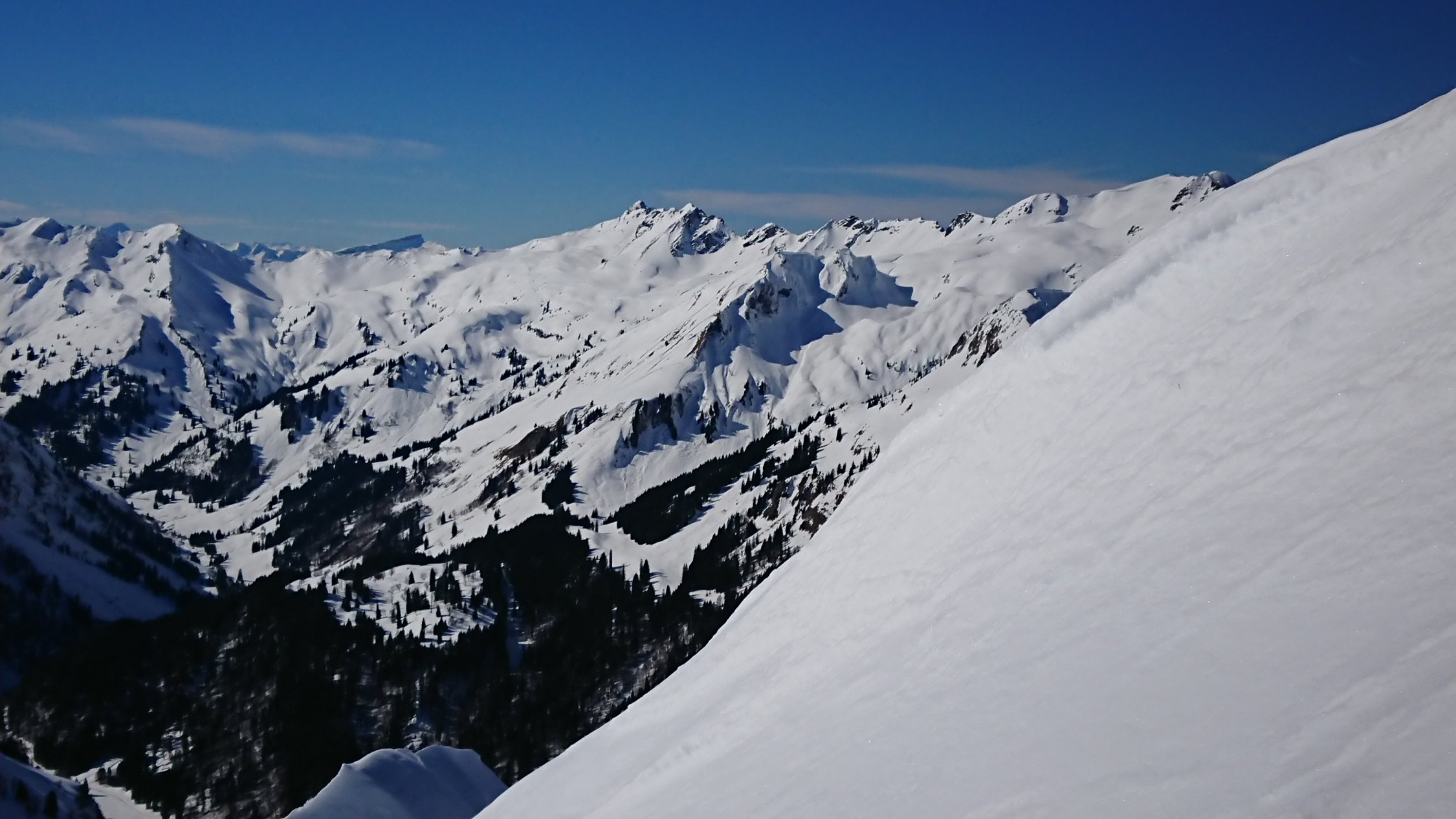 War zuerst auf dem Älpelekopf und bin dann bis zur Alpe abgefahren. Aufstieg zum Lahnerkopf mit kurzem Ausweichen in die NO-Flanke (am Grat).