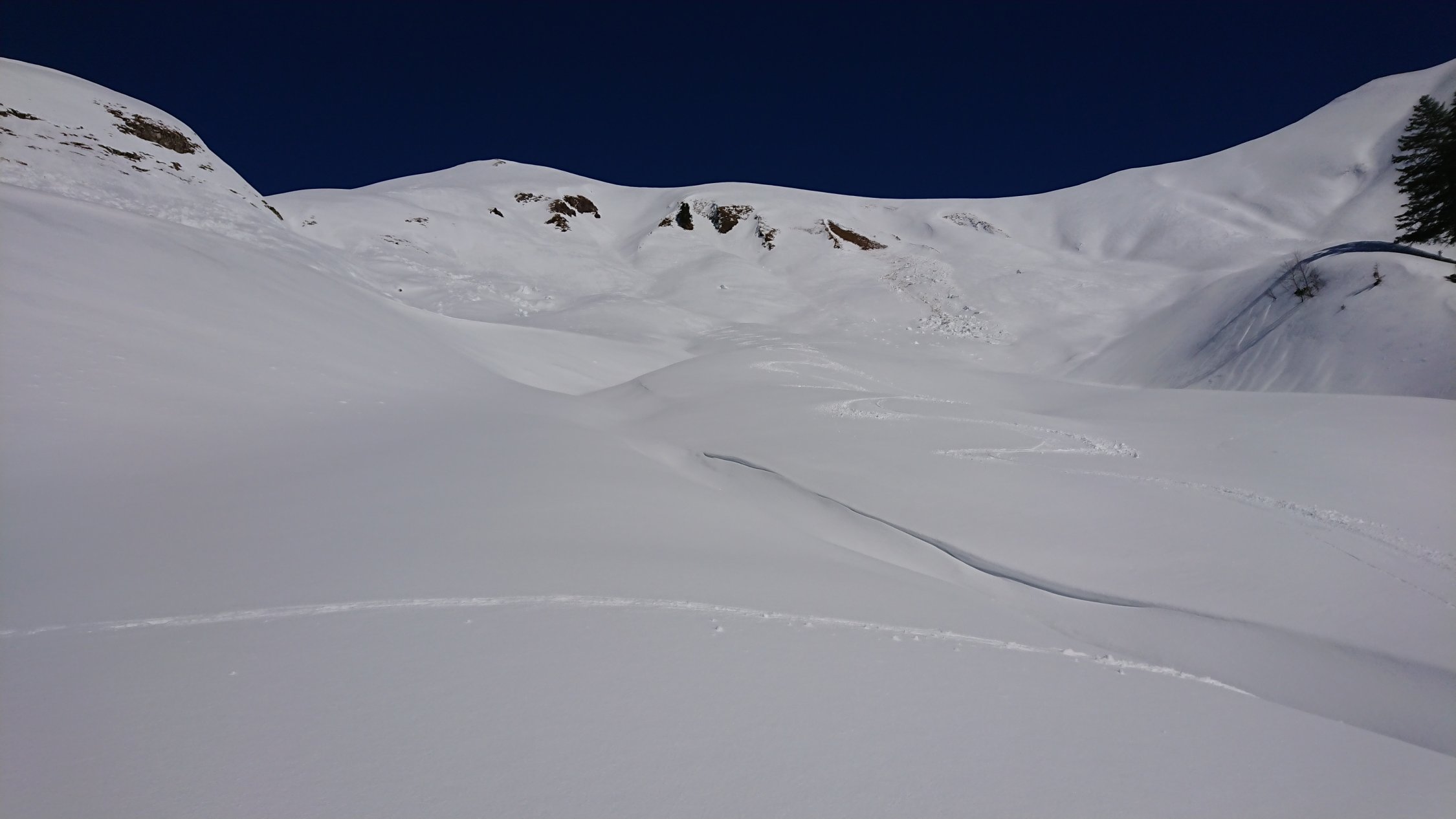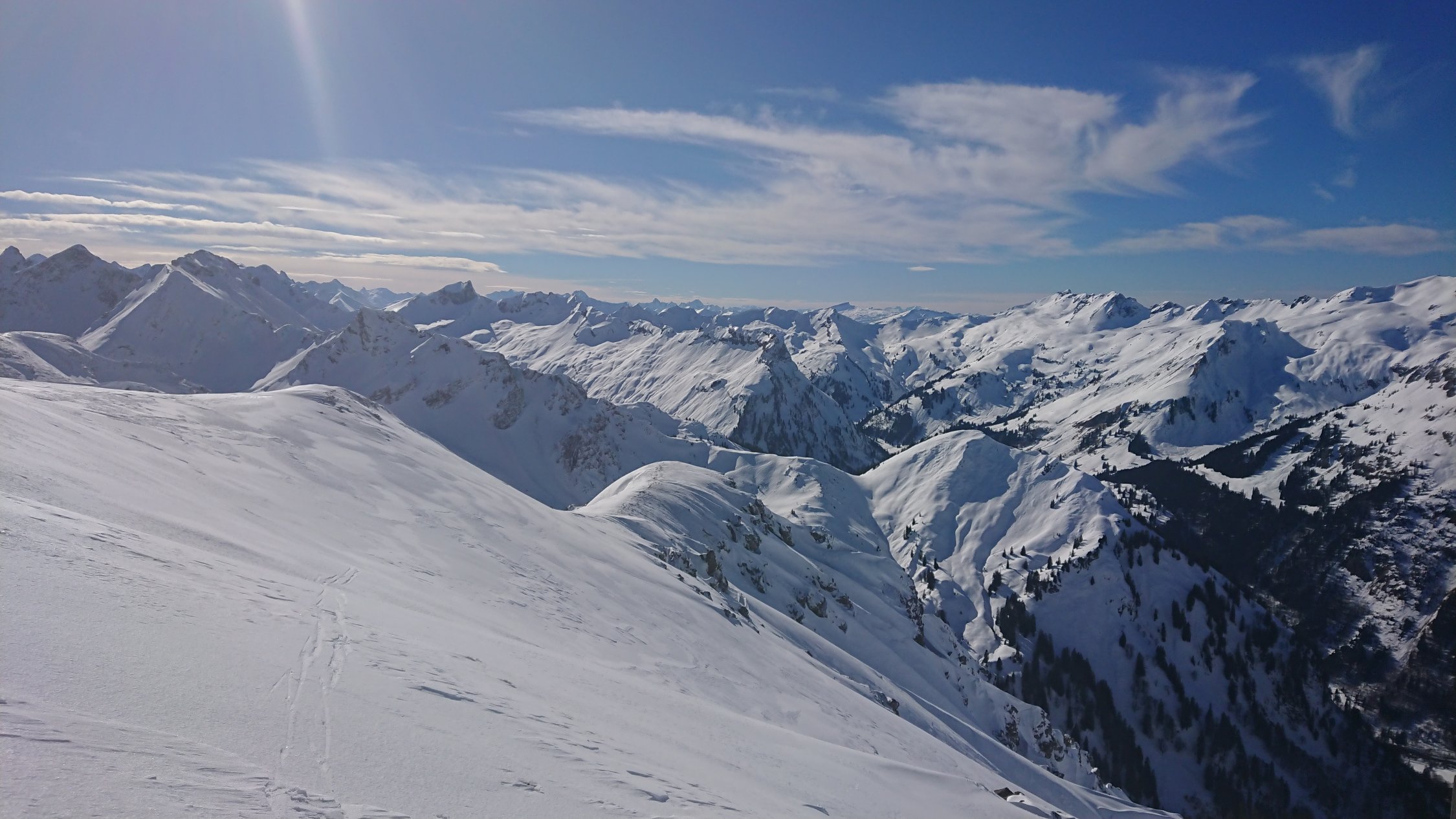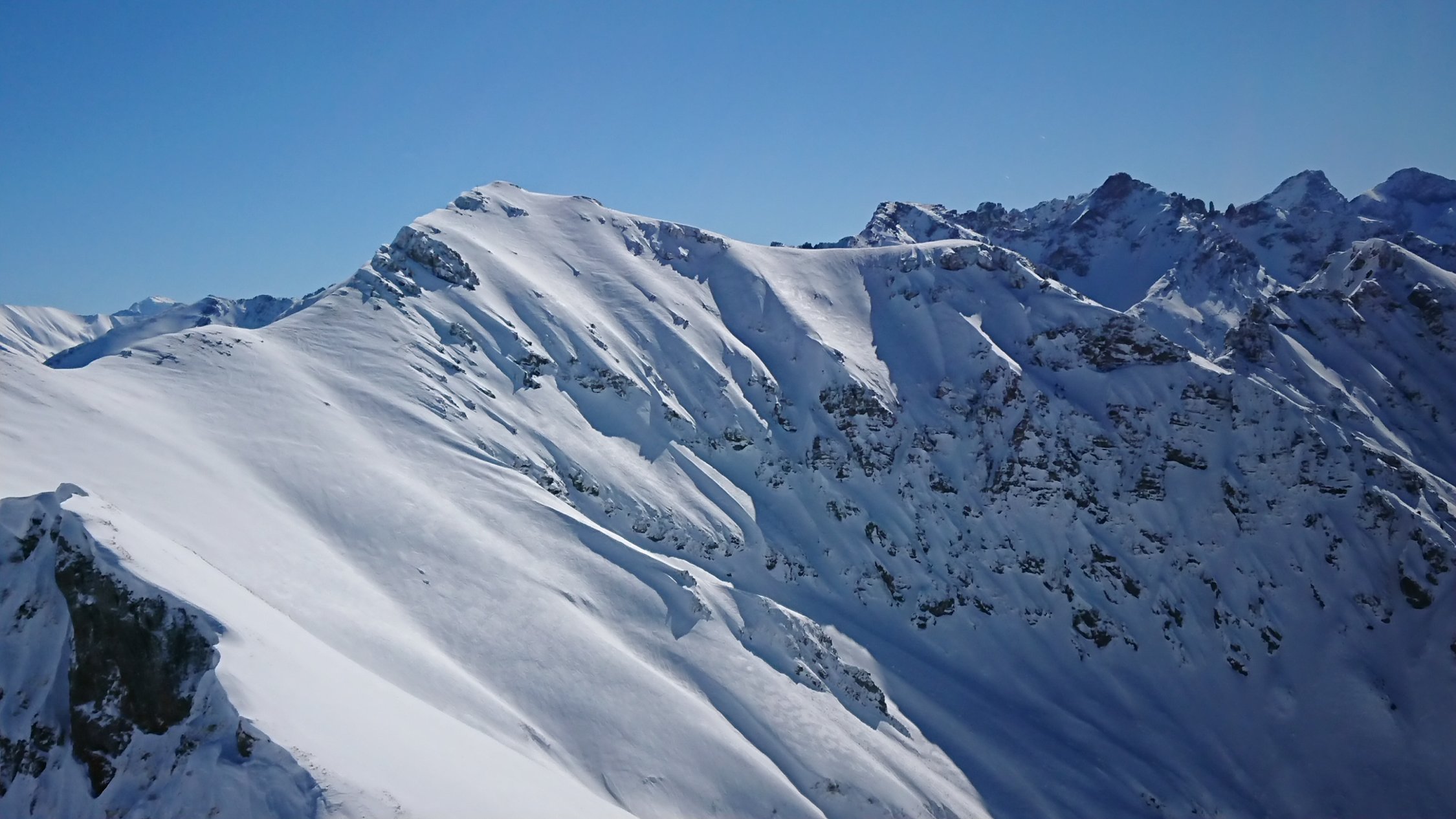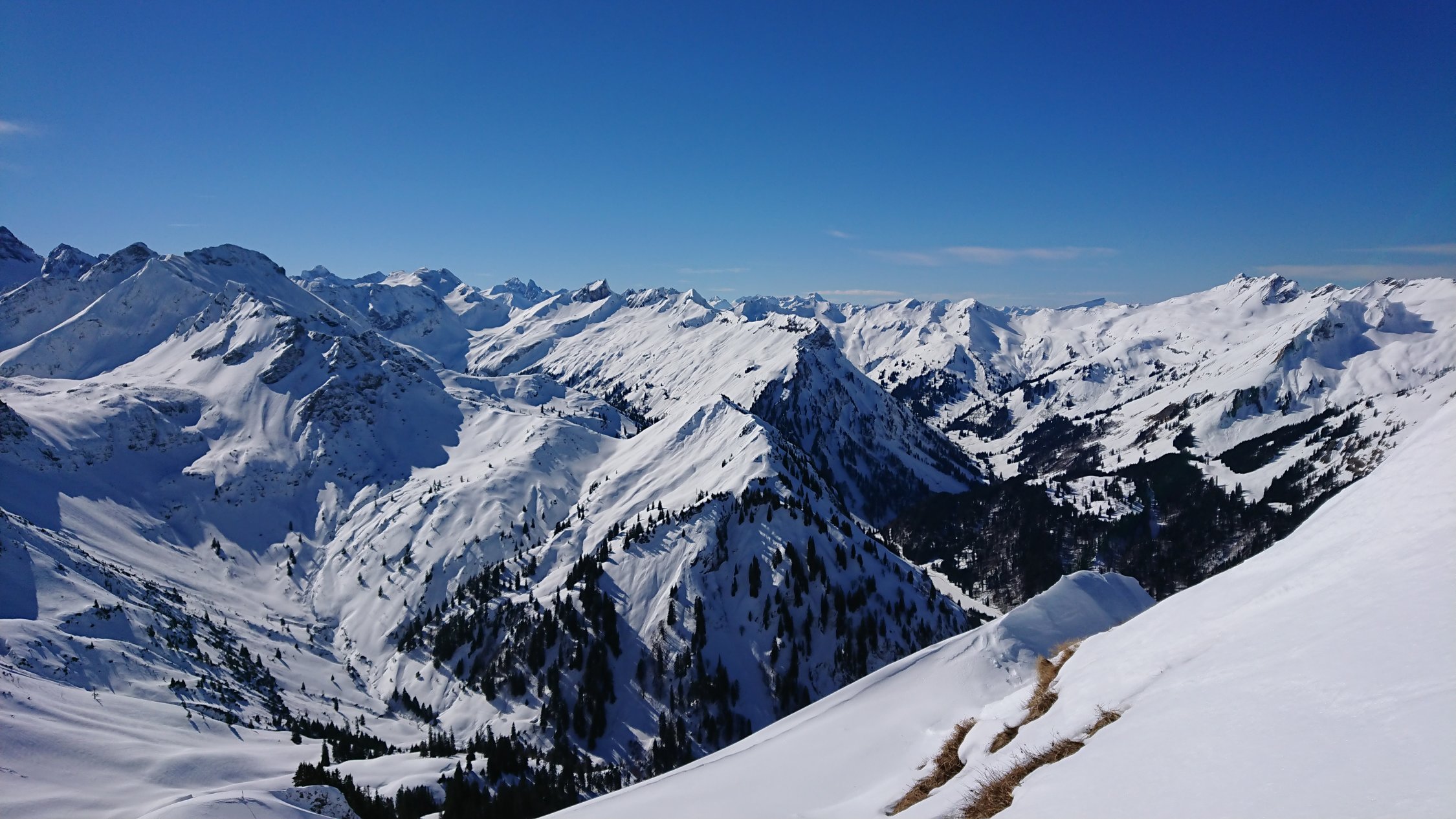 War zuerst auf dem Älpelekopf und bin dann bis zur Alpe abgefahren. Aufstieg zum Lahnerkopf mit kurzem Ausweichen in die NO-Flanke (am Grat).