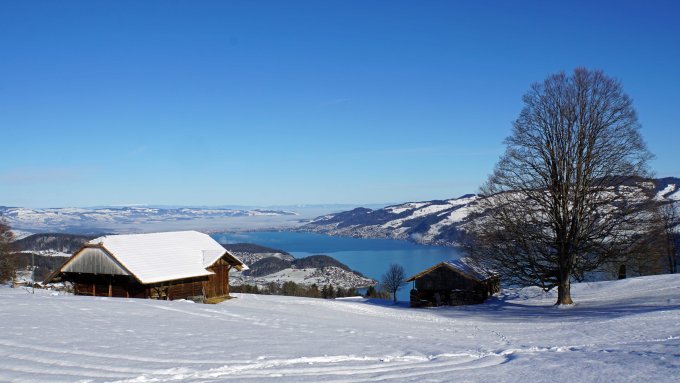 Nach dem leichten Neuschnee von gestern und bei den hohen Temperaturen, ist das Rezept für Stollen vorprogrammiert. Am Anfang noch keine Probleme aber kurz vor dem Brunni wurde ich allmählich immer etwas grösser und die Beine schwerer, sodass ein Abklopfen der klebrige Schneemasse immer wieder nötig war. Dann habe ich das letzte Stück die Schneeschuhe ausgezogen und das ging dann besser.