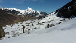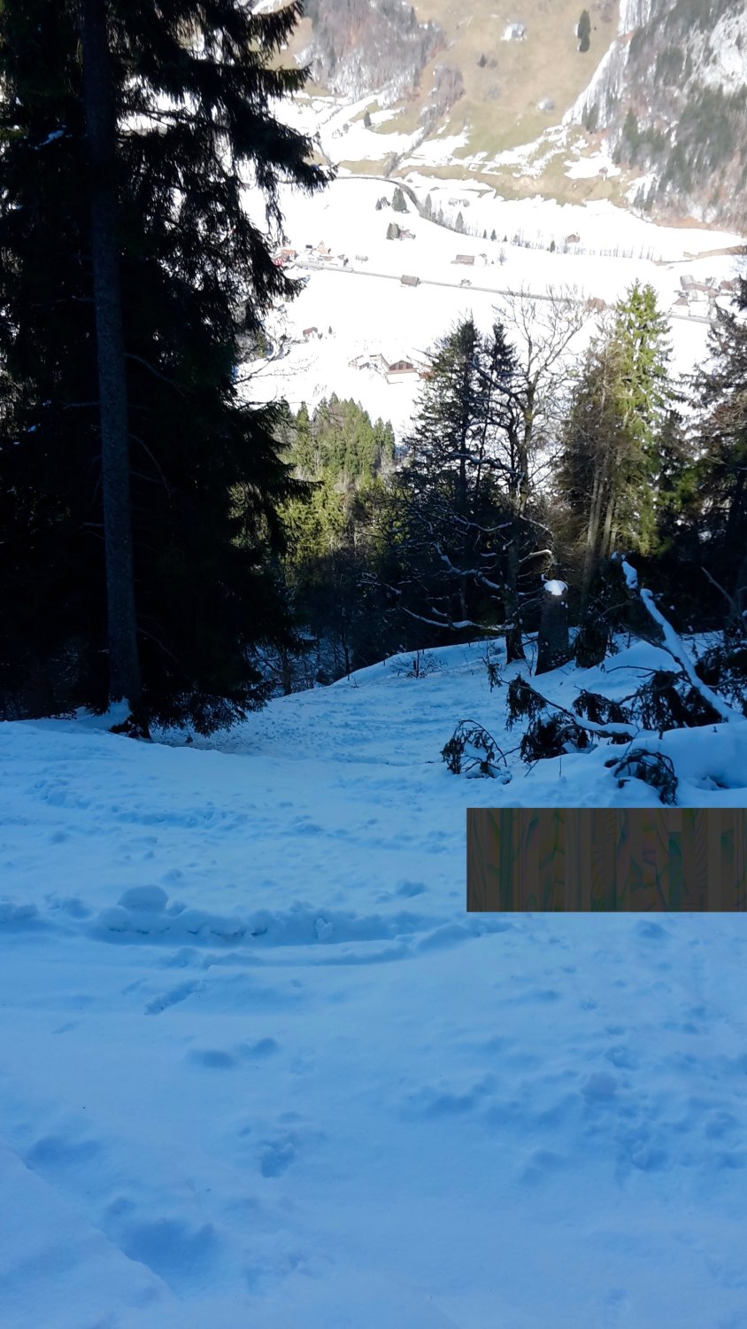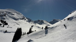 In der Morgenfrühe hart/Pulver unten und im Wald, im Westhang schön hart und griffig, auf dem Rücken dann zunächst pulvrig gegen oben immer eisiger und im Steilhang zuoberst so hart, dass man die Hangmitte nicht verlassen sollte (Absturzgefahr).