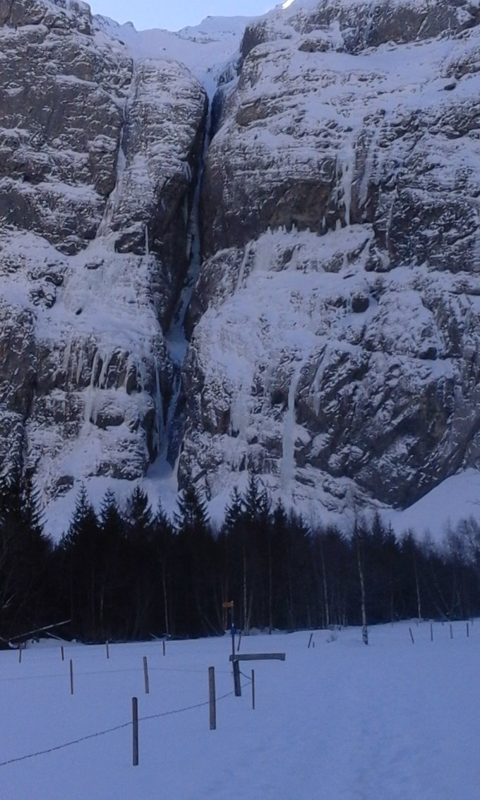 Seillänge eins und zwei können mit einem 60m Seil nicht ganz zusammengehängt oder abgeseilt werden. Das Eis hier war ziemlich gut. In der dritte Seillänge ist das Eis noch recht gut, aber es fliesst etwas Wasser. Die vierte Seillänge ist etwas morsch und man muss relativ viel schlagen um soliden halt für die Pickel zu finden. Die Länge ist trotzdem gut absicherbar. Ab hier kam recht viel Schneestaub runter. In der fünfte Länge fliesst relativ viel Wasser. Beim Eindrehen einer Schraube hat Bruno einen "Wasserader" getroffen und das Wasser schoss springbrunnenartig aus. Die sechste Seillänge war mehr Schneestapfen als Eisklettern. Abalokovs sind am Ende der fünften und sechsten Seillängen eingerichtet. Alle andere Stände sind gebohrt. Eine andere Seilschaft ist ein paar Minuten vor uns am Einstieg angekommen. Beim warten konnten wir auch die erste Seillänge von Zappelfilip bei guten Bedingungen klettern. Es sind überall Eisfälle im Gasterntal, aber diejenigen die südlich ausgerichtet sind sind schön hinterspült und die schattigen dürfen auch nicht mehr so lange gesund bleiben. Mal schauen ob es bis zum nächsten Wochenende reicht.